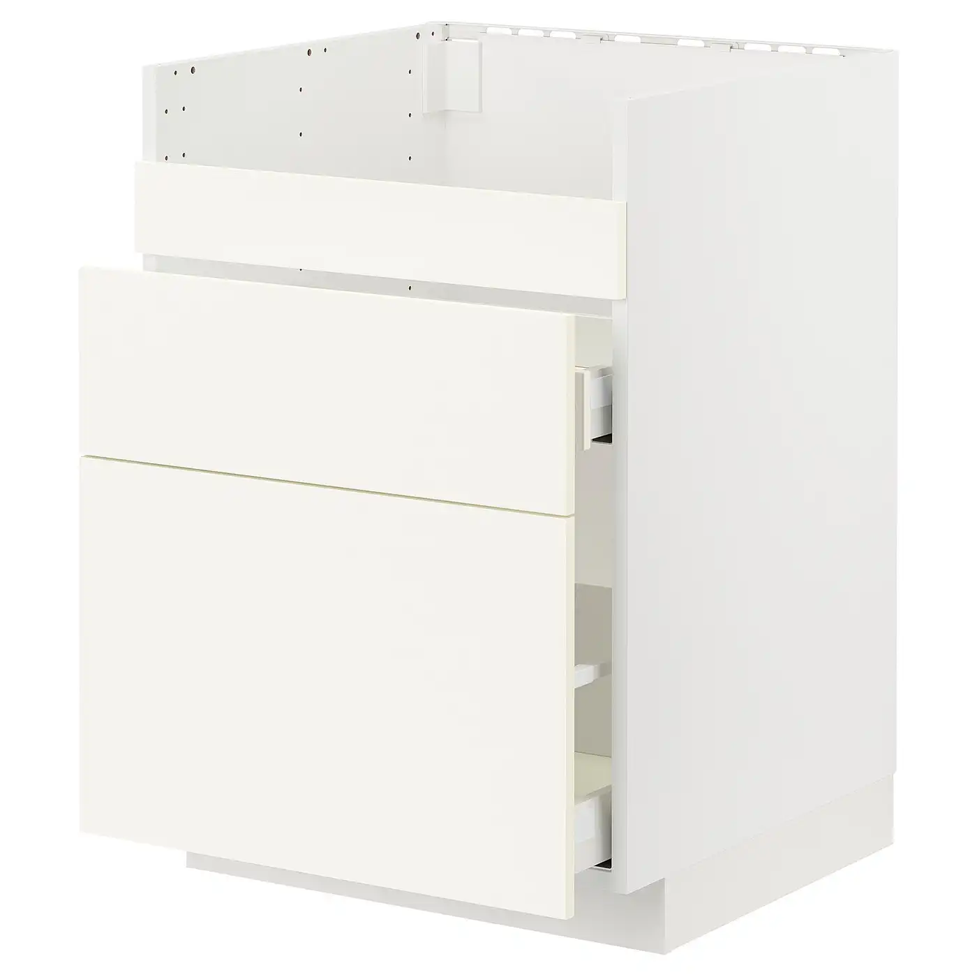 Compare all IKEA METOD Base cabinet for sink with 3 fronts and 2 drawers 60x60 cm MAXIMERA white/VEDHAMN oak prices