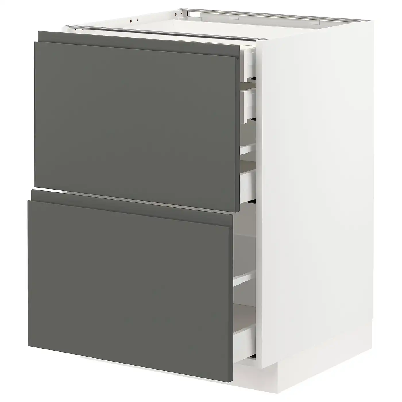 METOD / MAXIMERA Base cb 2 frnts/2 low/1 md/1 hi drw - white/Voxtorp dark grey 60x60 cm