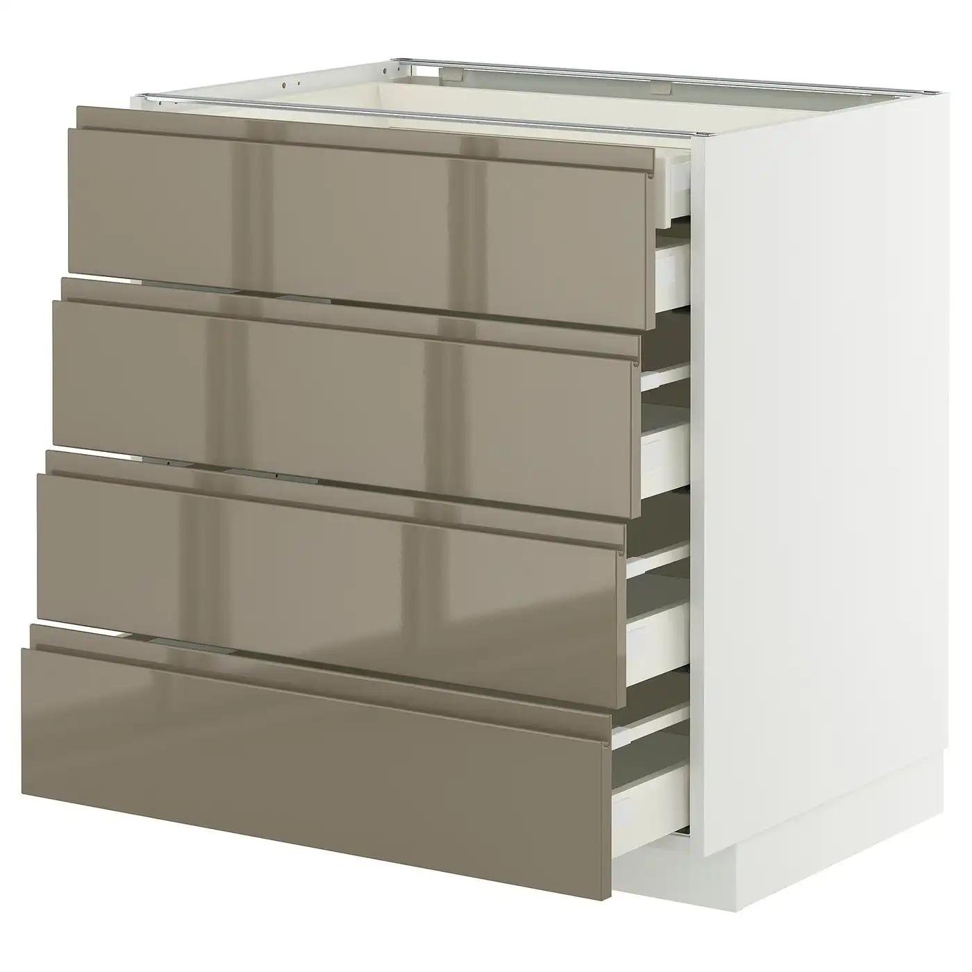 METOD / MAXIMERA Base cb 4 frnts/2 low/3 md drwrs - white/Voxtorp high-gloss dark grey-brown 80x60 cm