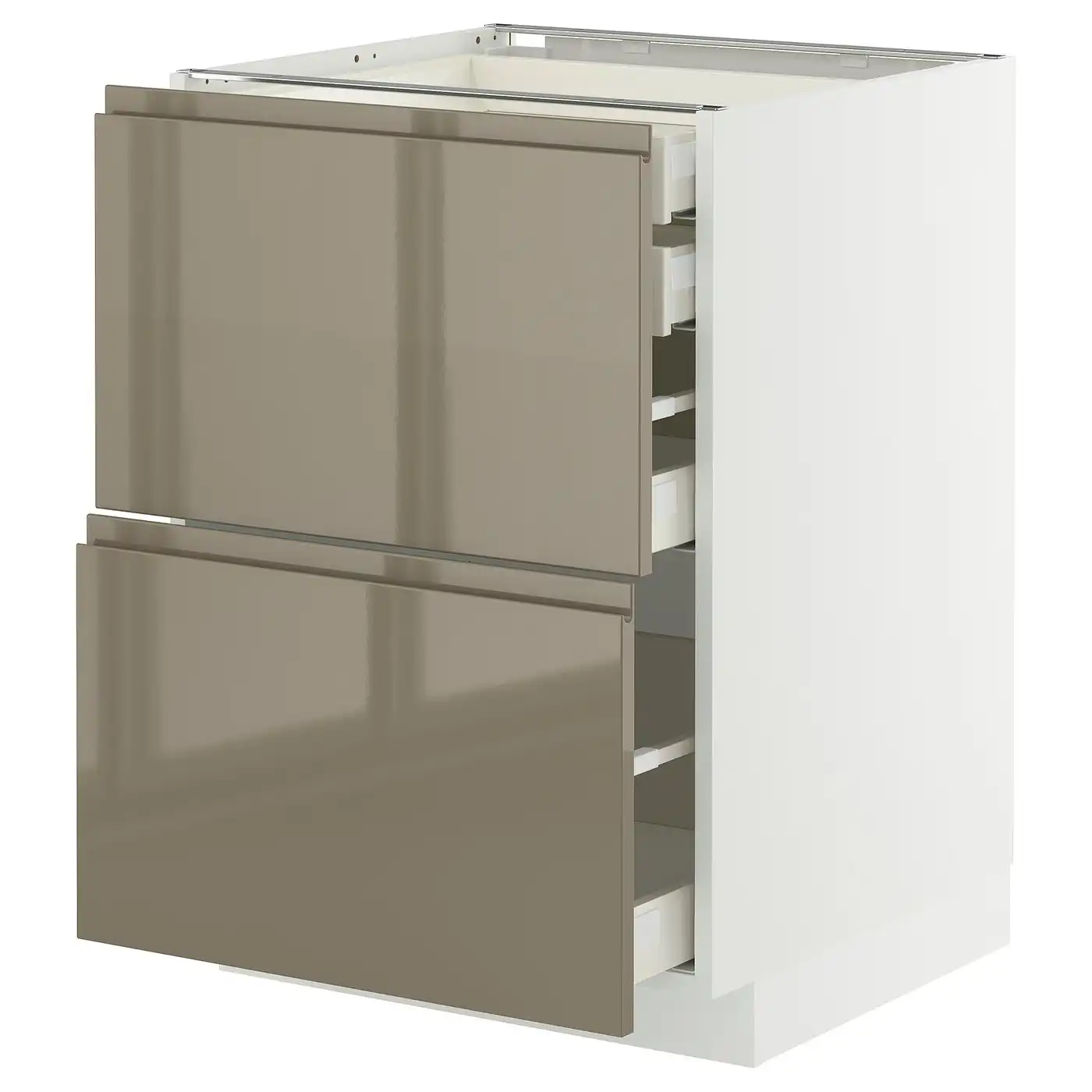 METOD / MAXIMERA Base cb 2 frnts/2 low/1 md/1 hi drw - white/Voxtorp high-gloss dark grey-brown 60x60 cm