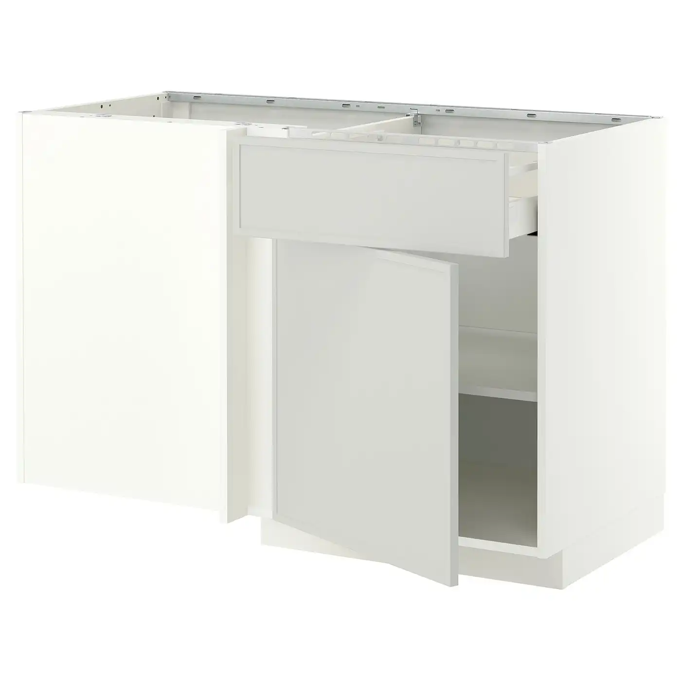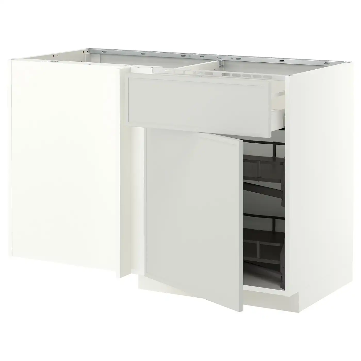 Compare all IKEA METOD Corner cabinet with drawer and shelf 128x68 cm MAXIMERA white/ASPUDDEN light grey prices
