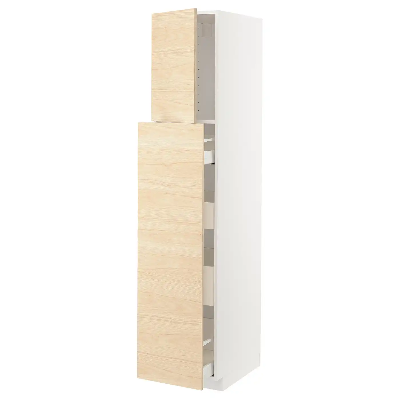 METOD / MAXIMERA Hi cab w 2 doors/4 drawers - white/Askersund light ash effect 40x60x200 cm