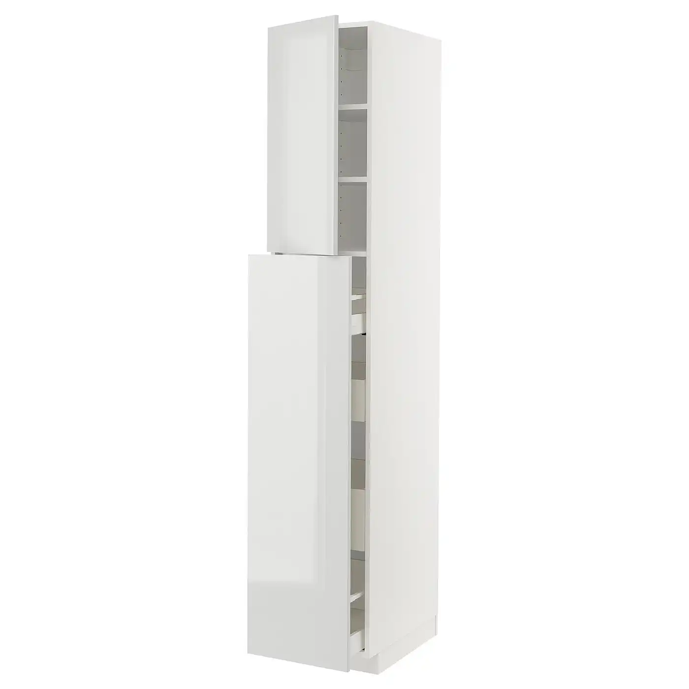 METOD / MAXIMERA Hi cab w shlvs/4 drawers/dr/2 frnts - white/Ringhult light grey 40x60x220 cm