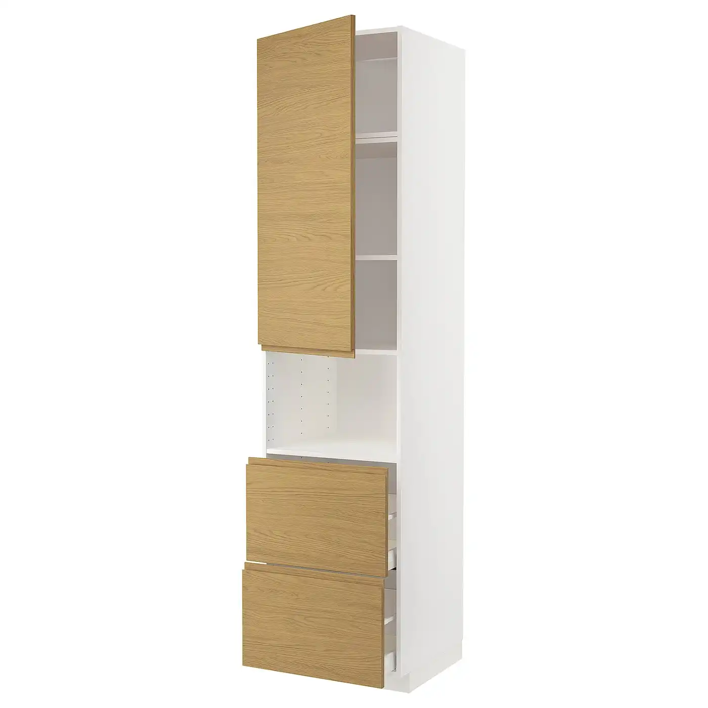 METOD / MAXIMERA Hi cab f micro w door/2 drawers - white/Voxtorp oak effect 60x60x240 cm