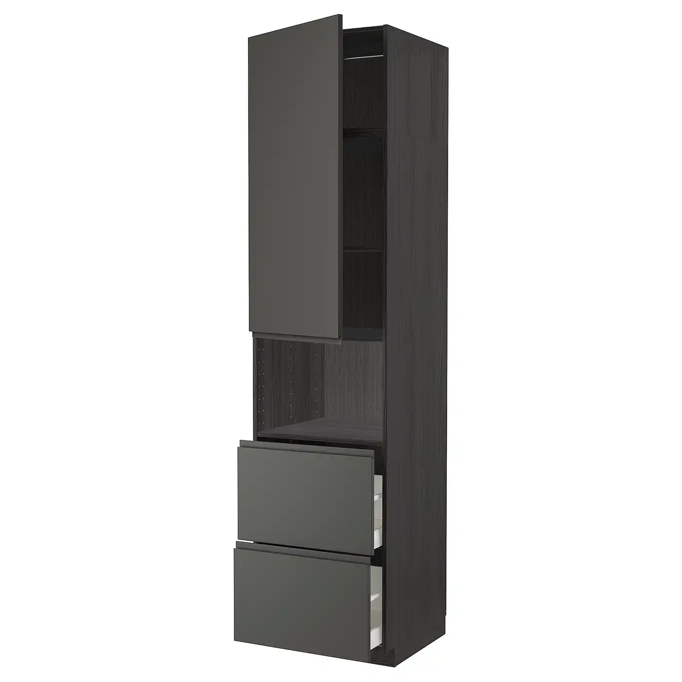 METOD / MAXIMERA High cab f oven/micro w dr/2 drwrs - black/Voxtorp dark grey 60x60x240 cm
