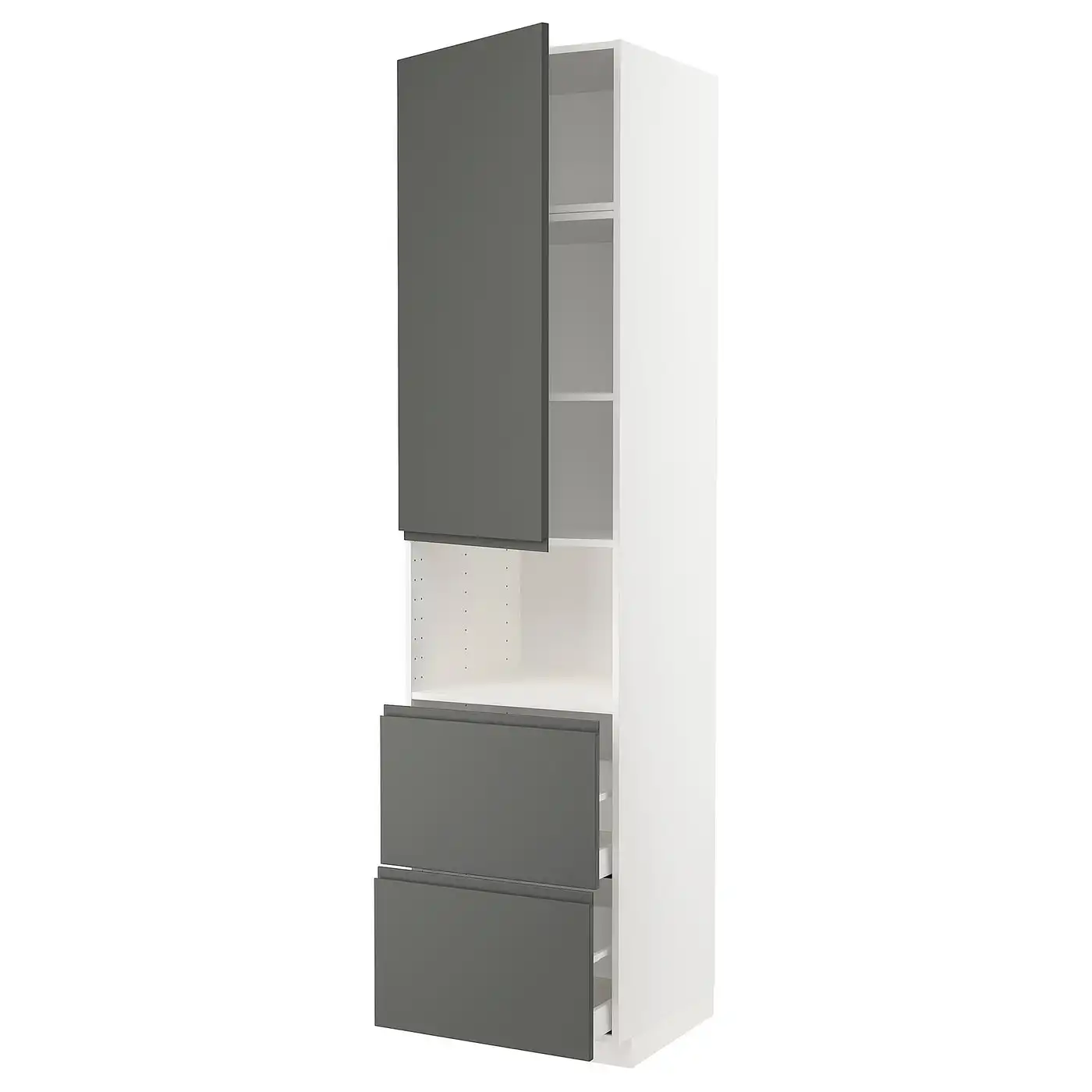 METOD / MAXIMERA Hi cab f micro w door/2 drawers - white/Voxtorp dark grey 60x60x240 cm