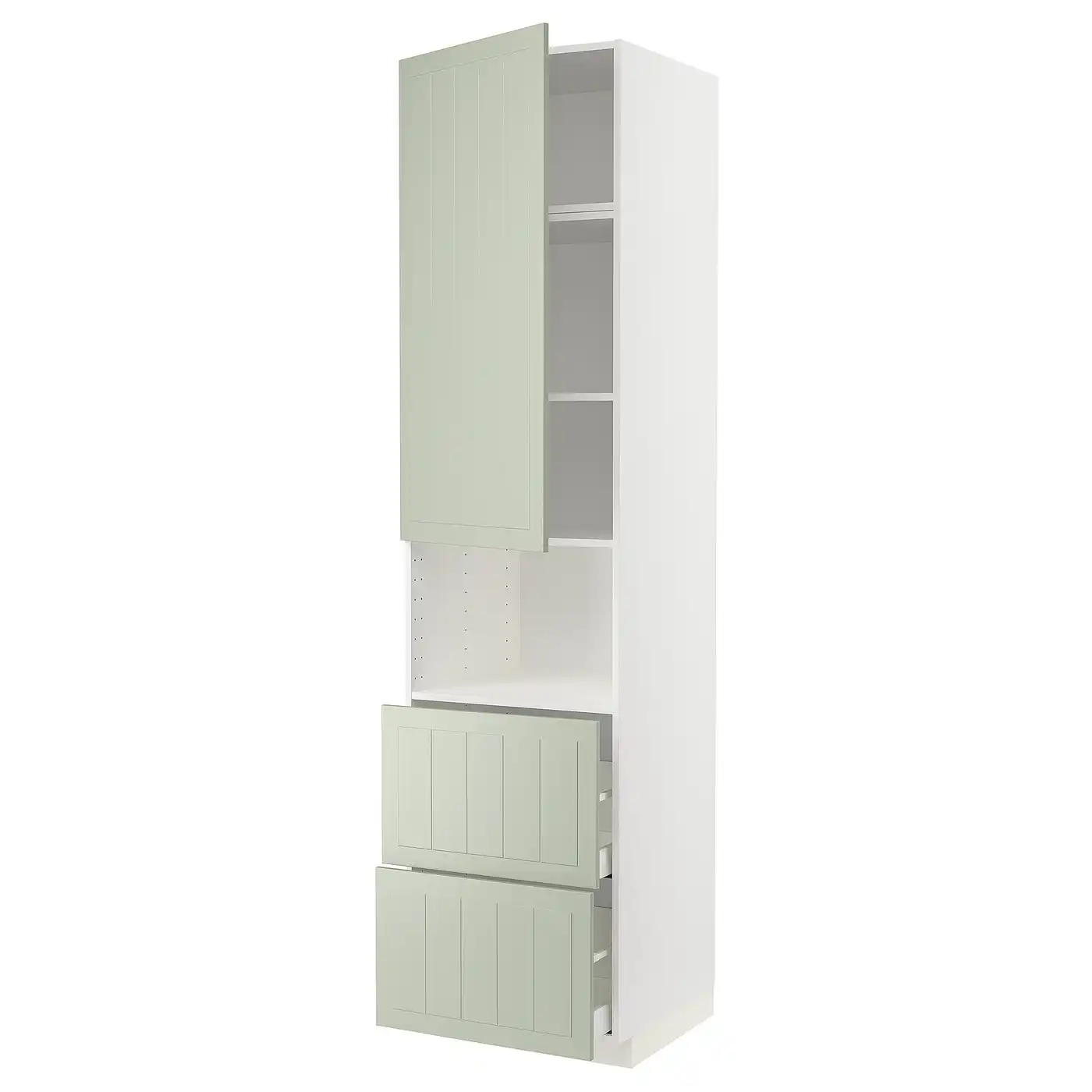 METOD / MAXIMERA Hi cab f micro w door/2 drawers - white/Stensund light green 60x60x240 cm