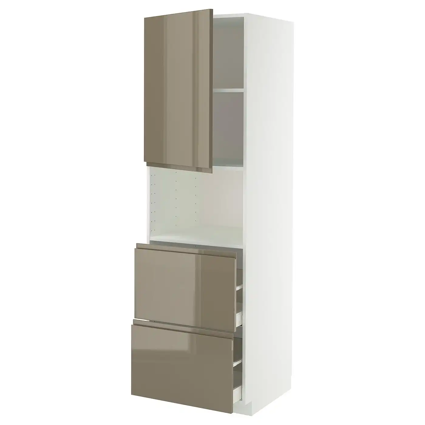 METOD / MAXIMERA Hi cab f micro w door/2 drawers - white/Voxtorp high-gloss dark grey-brown 60x60x200 cm