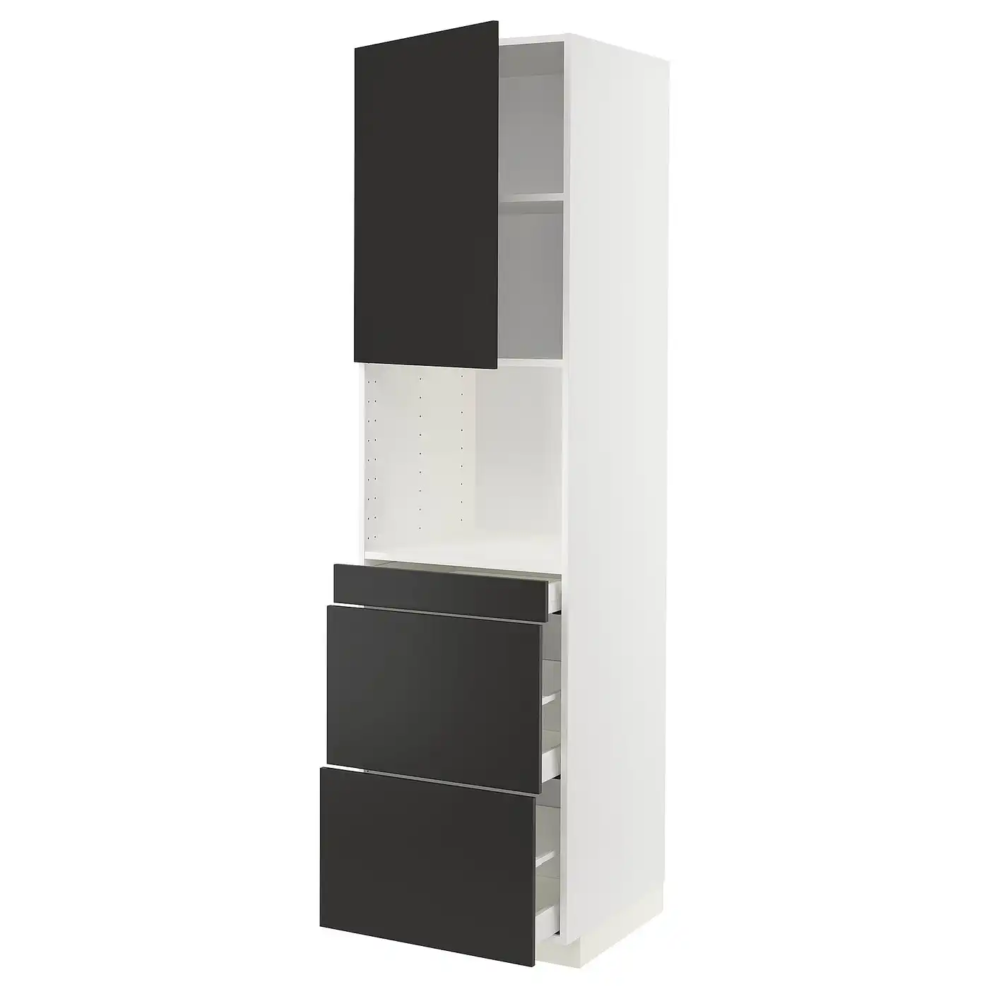 METOD / MAXIMERA Hi cab f micro w door/2 drawers - white/Nickebo matt anthracite 60x60x220 cm