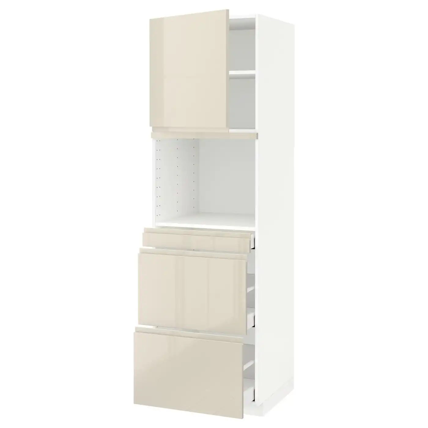 METOD / MAXIMERA Hi cab f micro combi w door/3 drwrs - white/Voxtorp high-gloss light beige 60x60x200 cm