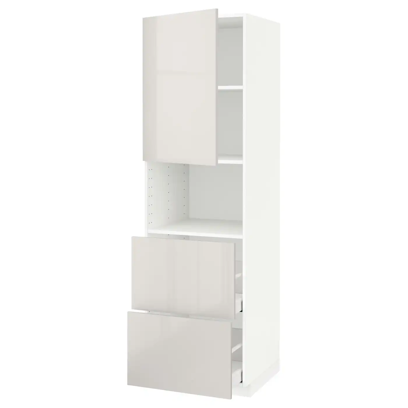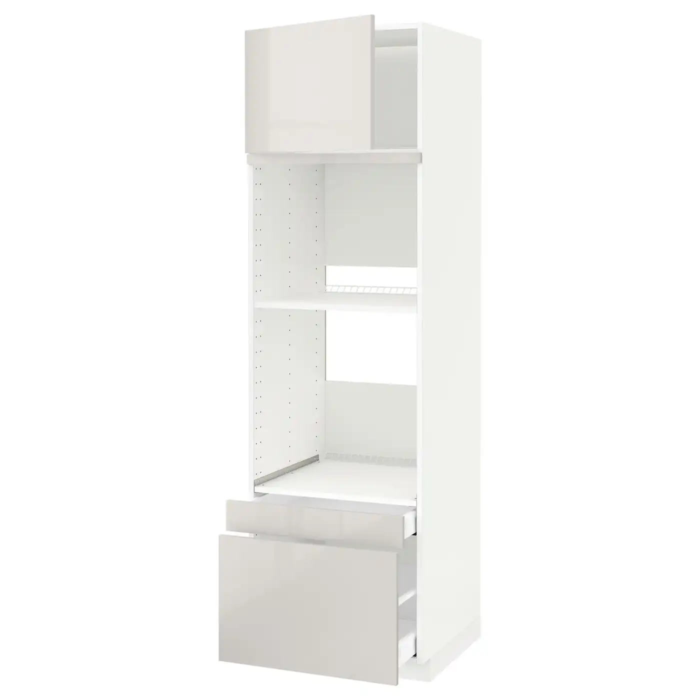 METOD / MAXIMERA Hi cab f ov w dr/2 frnt/1 m/1 h drw - white/Ringhult light grey 60x60x200 cm