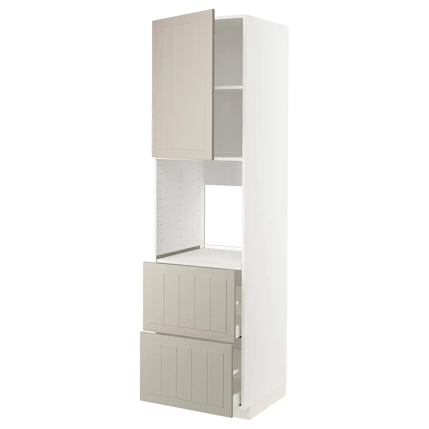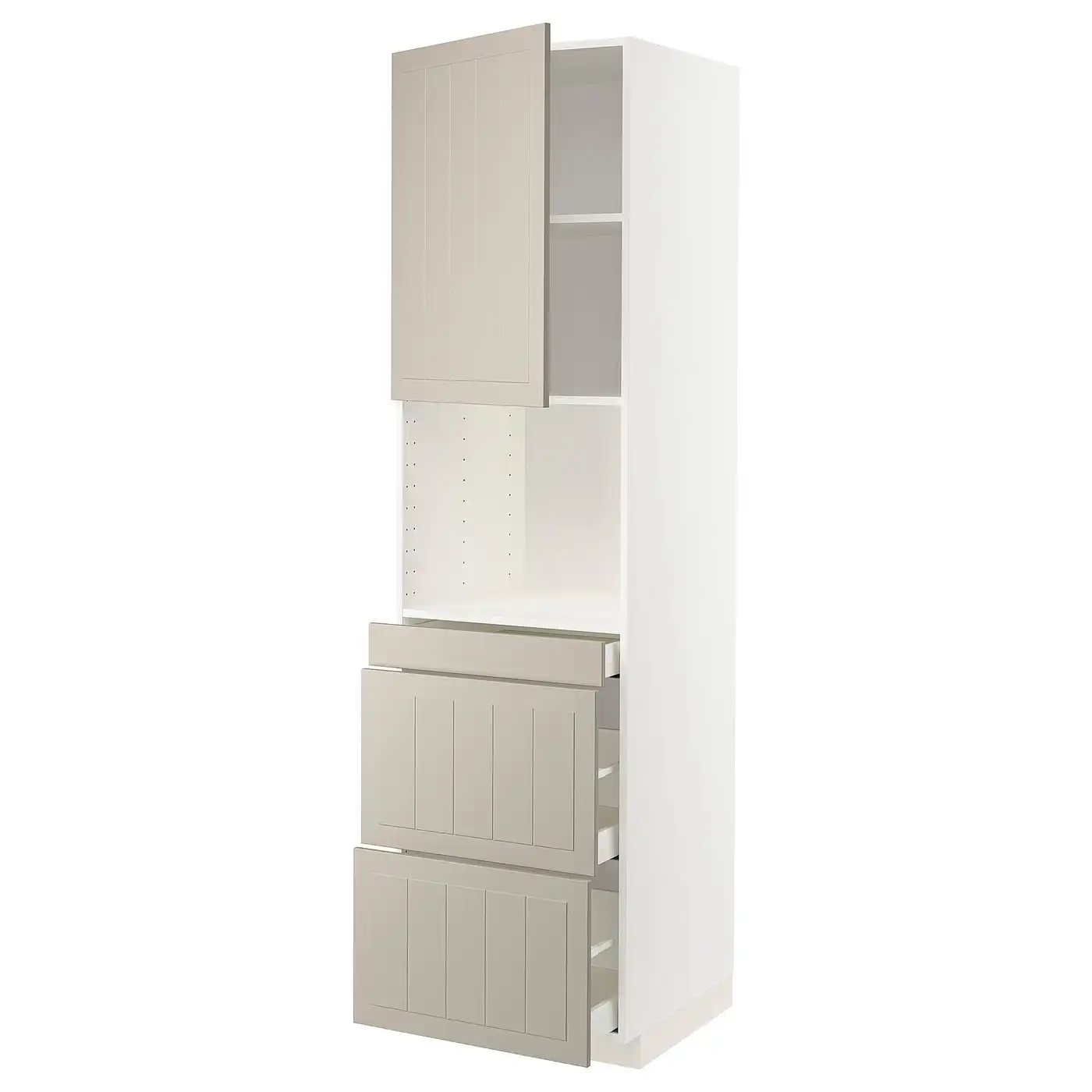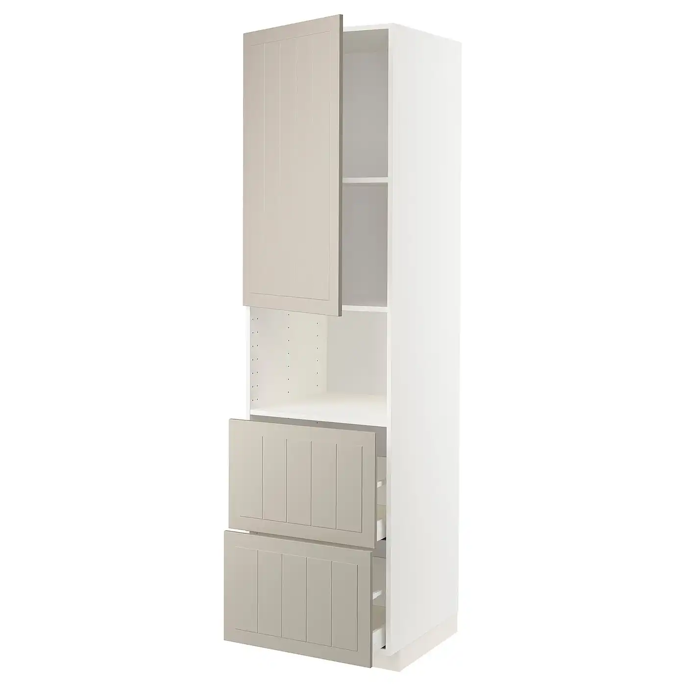METOD / MAXIMERA Hi cab f micro w door/2 drawers - white/Stensund beige 60x60x220 cm