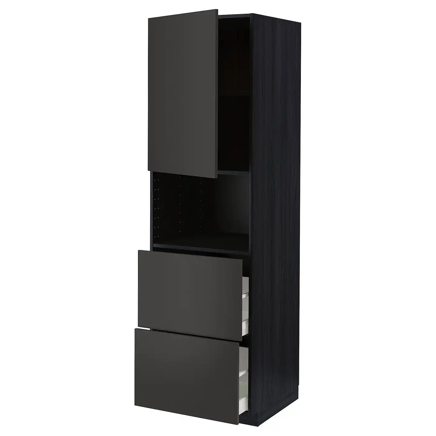 METOD / MAXIMERA Hi cab f micro w door/2 drawers - black/Nickebo matt anthracite 60x60x200 cm