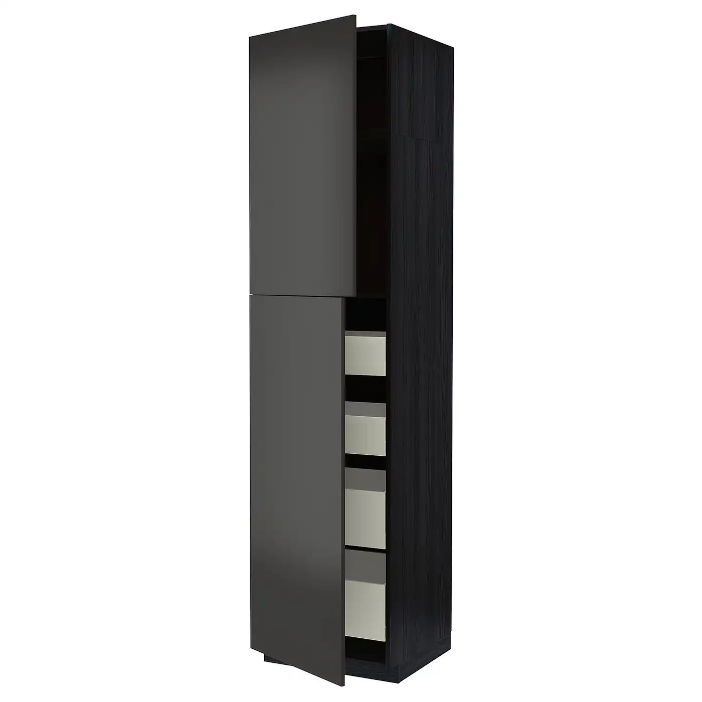 METOD / MAXIMERA Hi cab w 2 doors/4 drawers - black/Nickebo matt anthracite 60x60x240 cm
