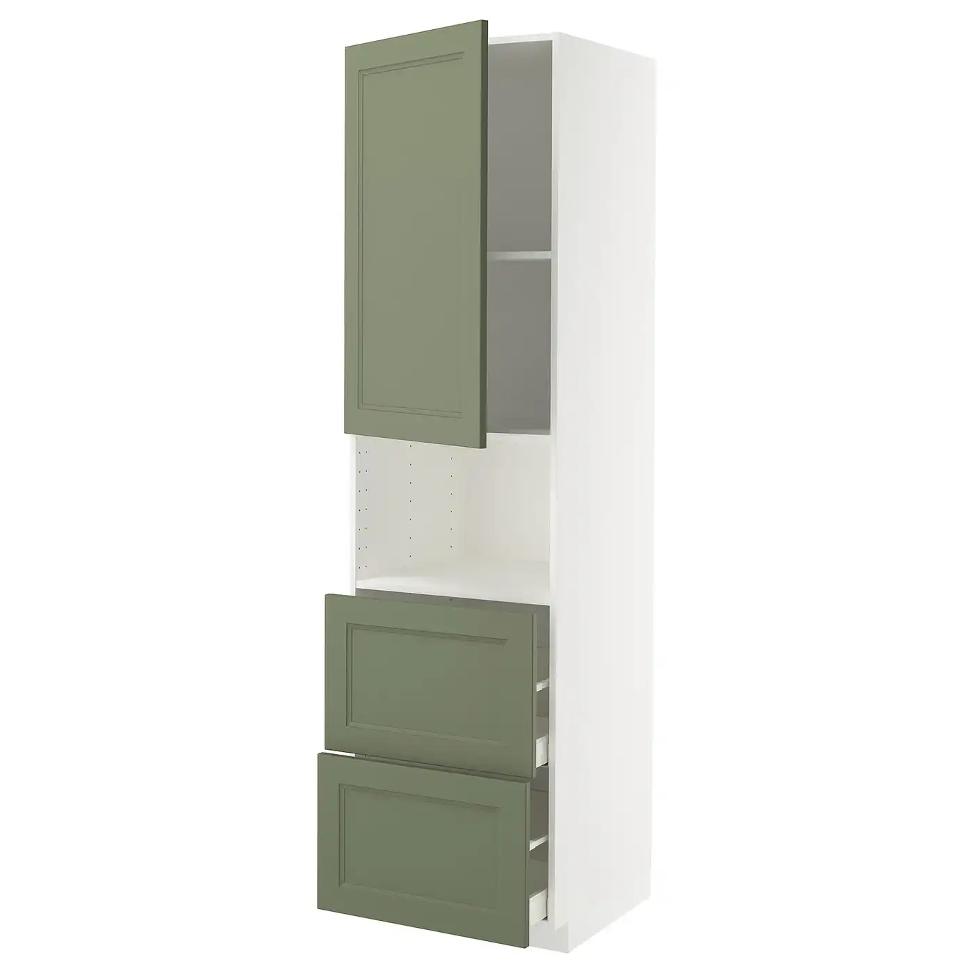 METOD / MAXIMERA Hi cab f micro w door/2 drawers - white/Axstad grey-green 60x60x220 cm
