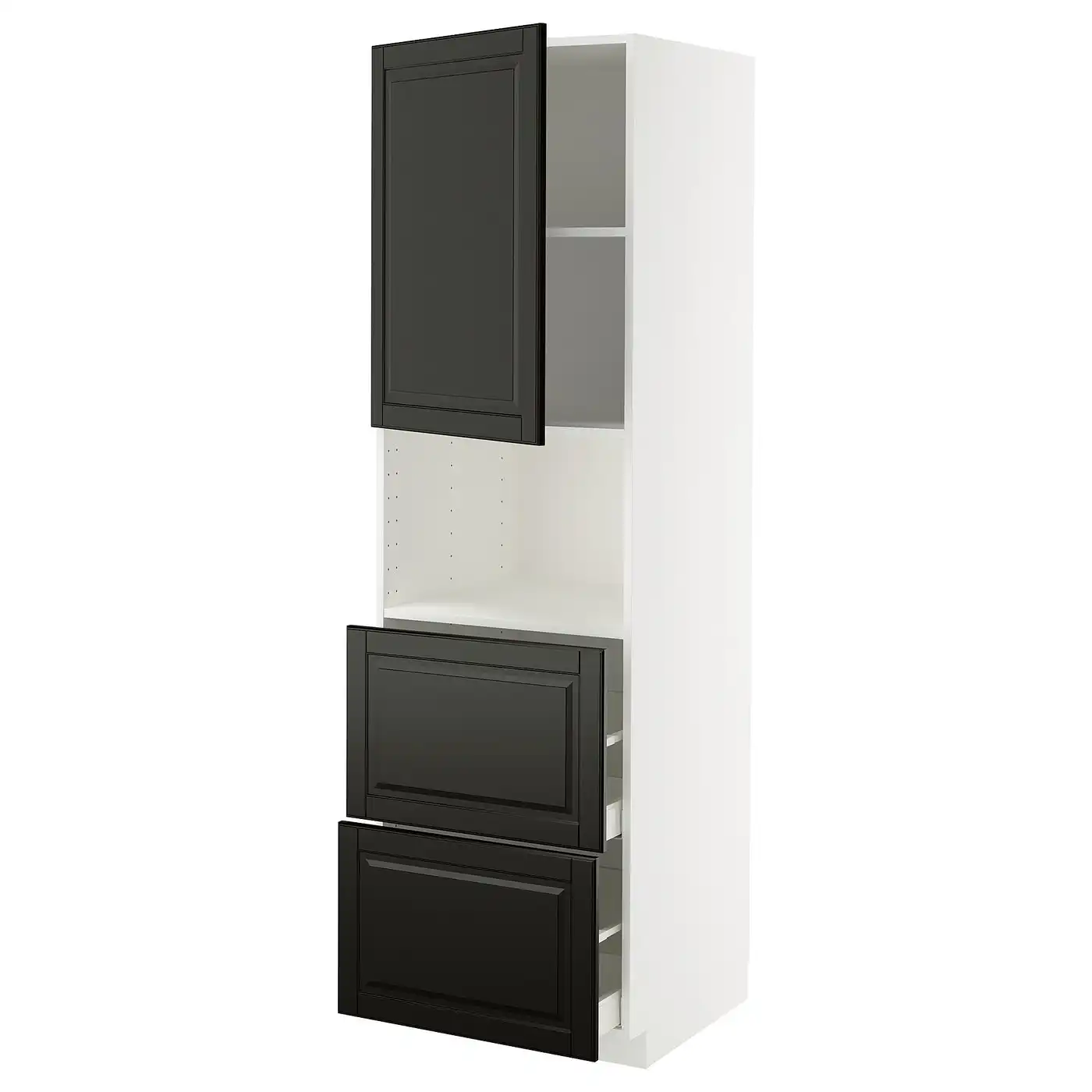 METOD / MAXIMERA Hi cab f micro w door/2 drawers - white/Bodbyn black 60x60x200 cm