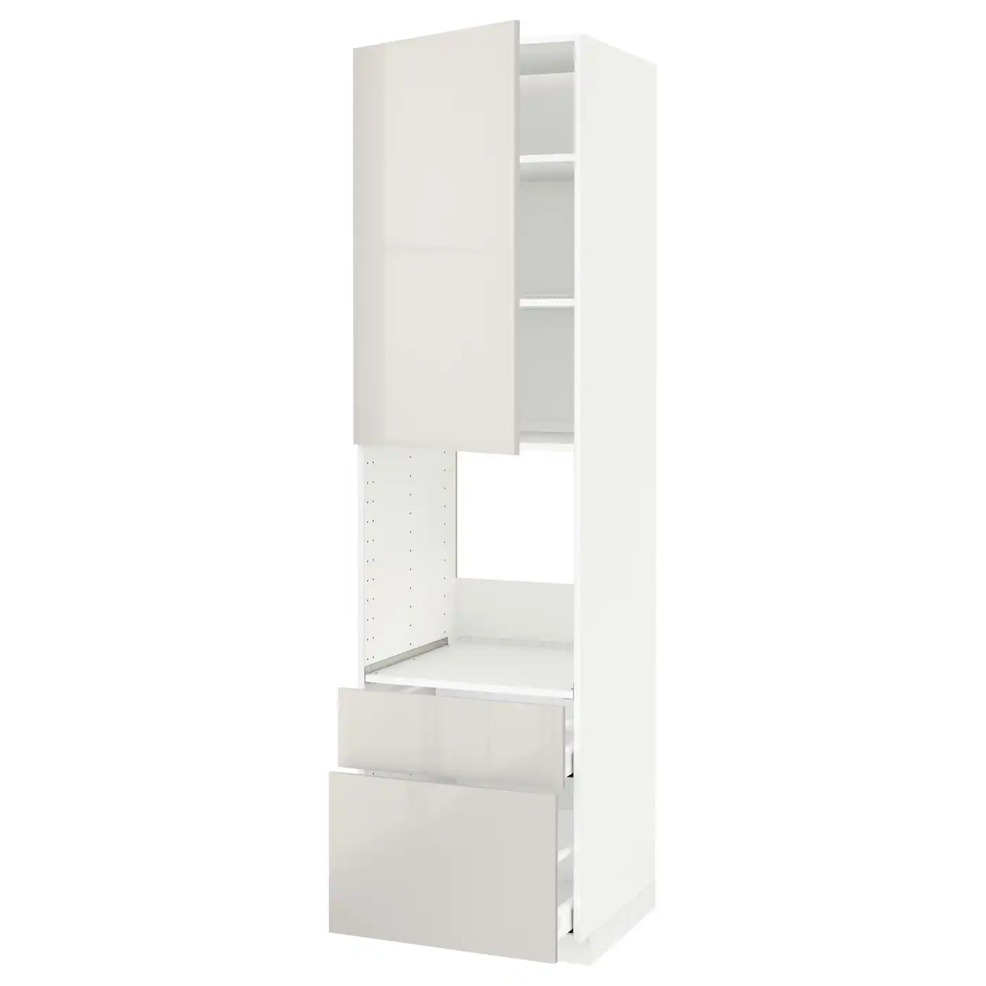 METOD / MAXIMERA Hi cab f ov w dr/2 frnt/1 m/1 h drw - white/Ringhult light grey 60x60x220 cm