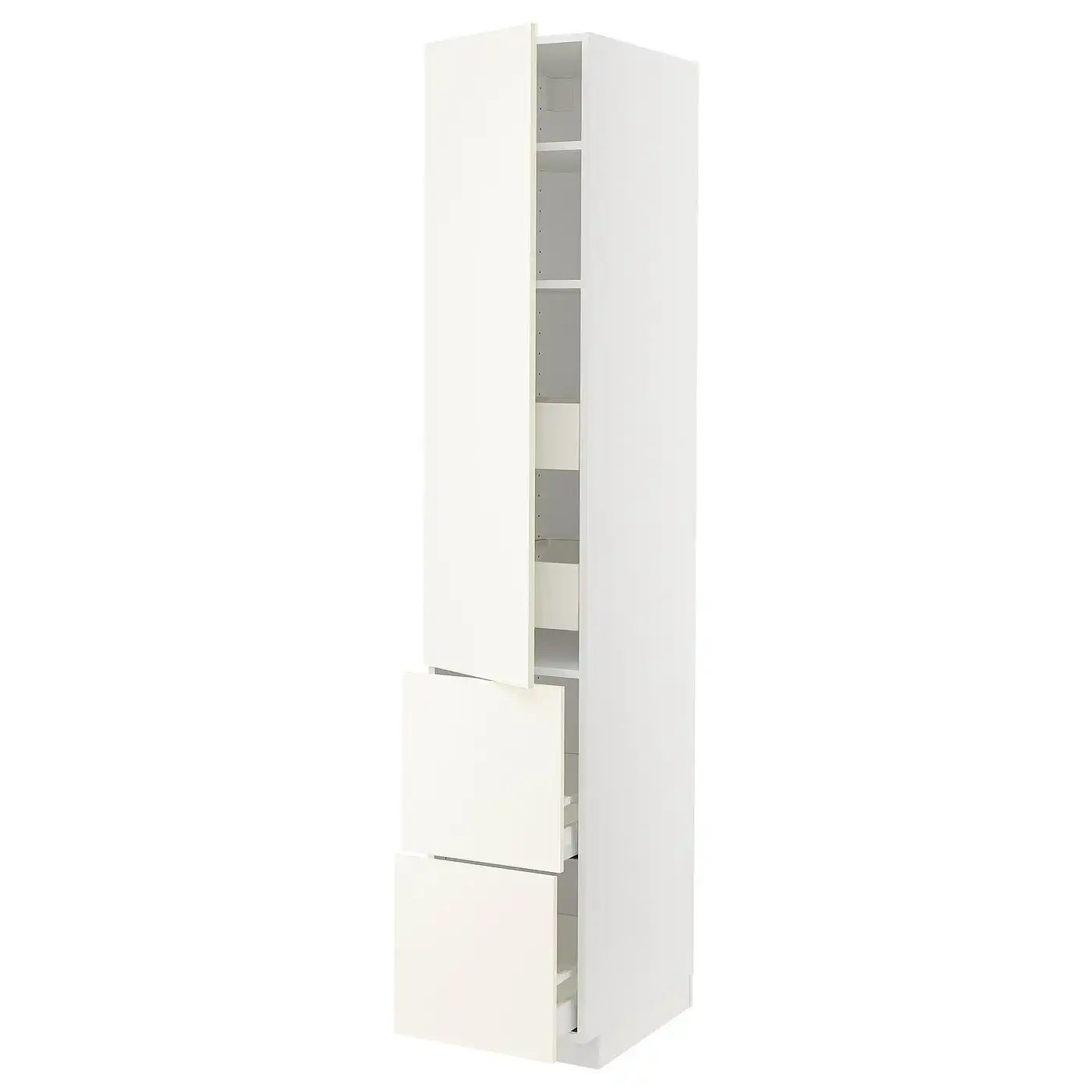 METOD / MAXIMERA Hi cab w 2 doors/4 drawers - white/Vallstena white 40x60x220 cm