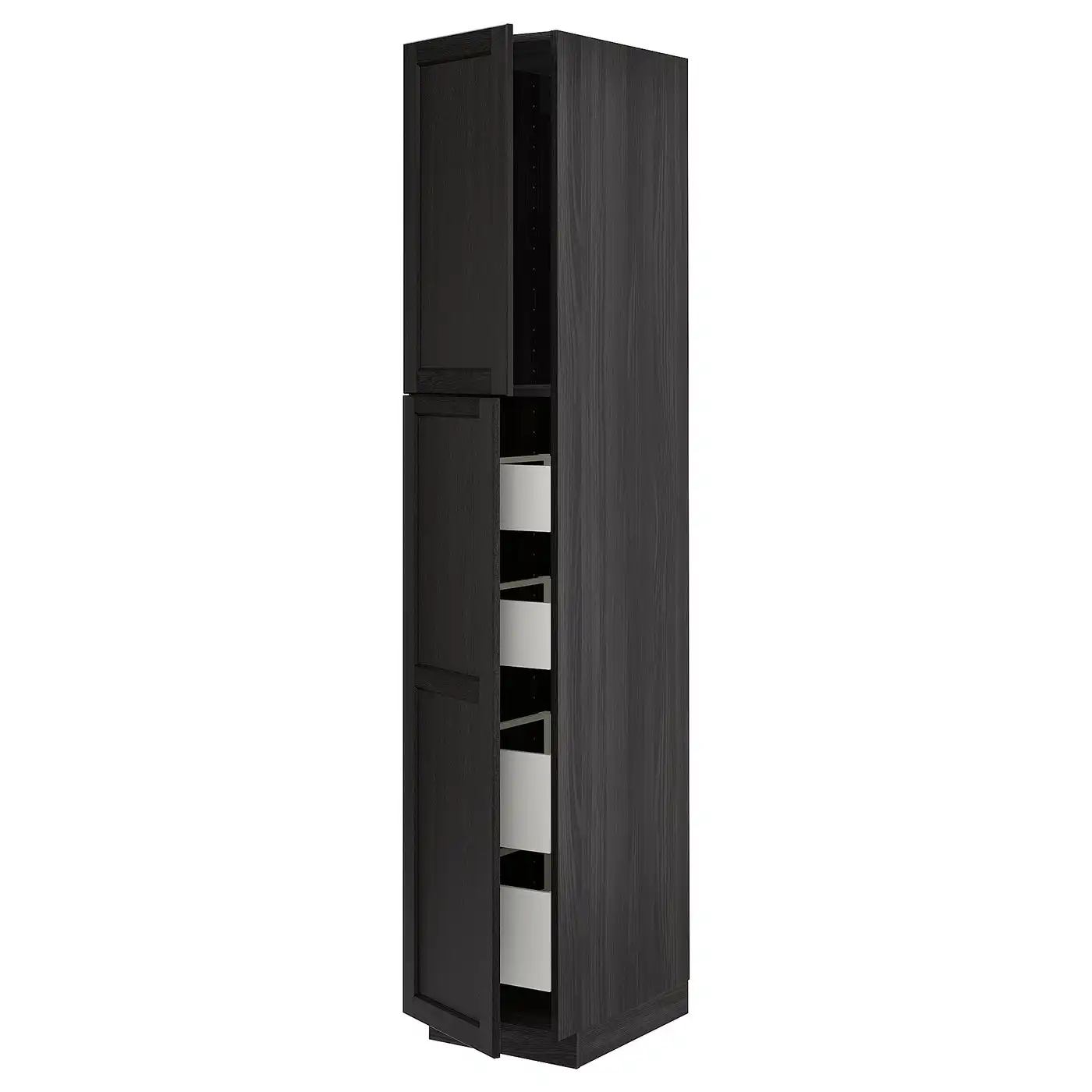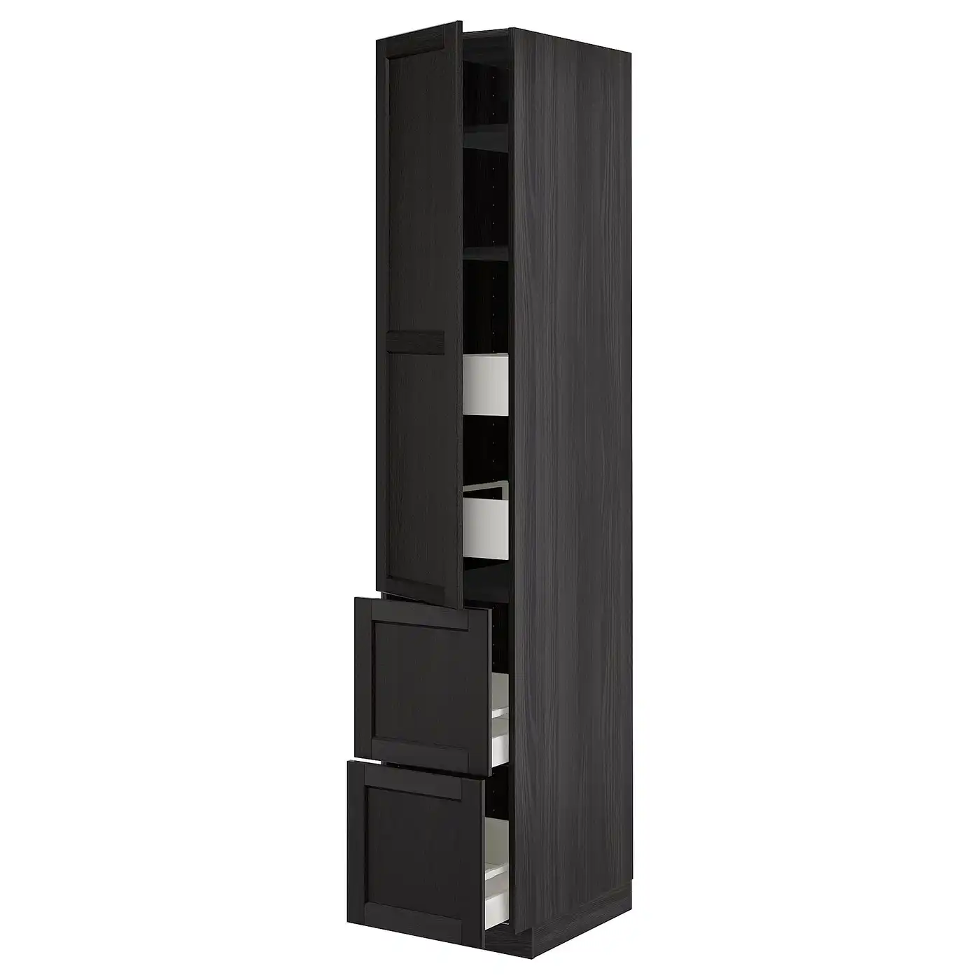 METOD / MAXIMERA Hi cab w shlvs/4 drawers/dr/2 frnts - black/Lerhyttan black stained 40x60x220 cm