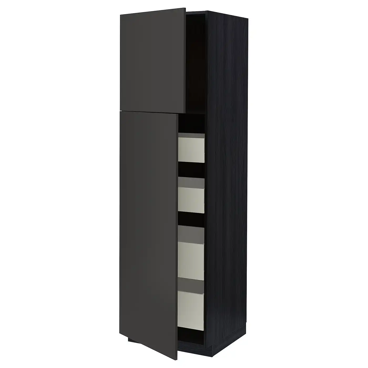 METOD / MAXIMERA Hi cab f ov w dr/2 frnts/2 hi drwrs - black/Nickebo matt anthracite 60x60x200 cm