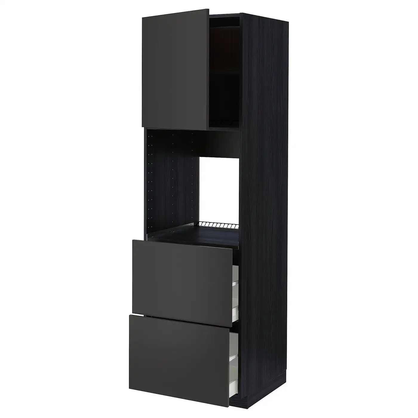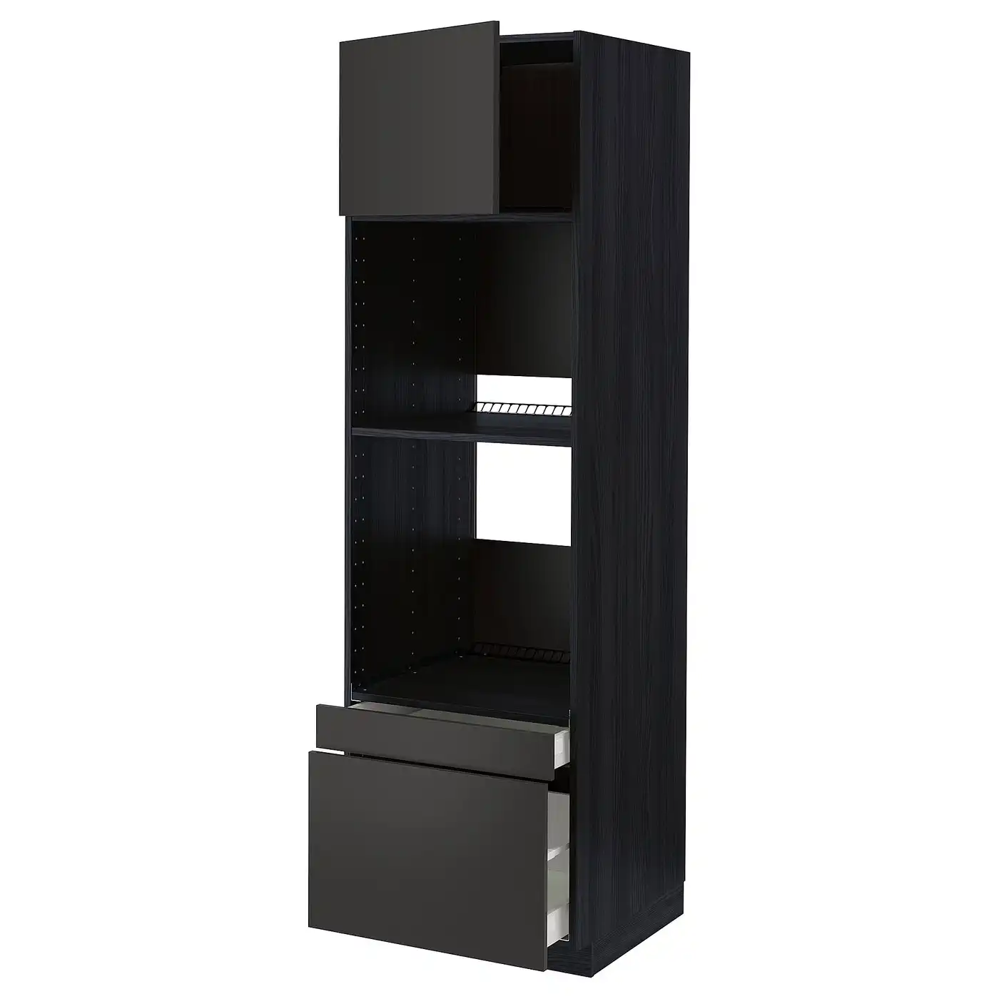 METOD / MAXIMERA Hi cab f ov/combi ov w dr/2 drwrs - black/Nickebo matt anthracite 60x60x200 cm