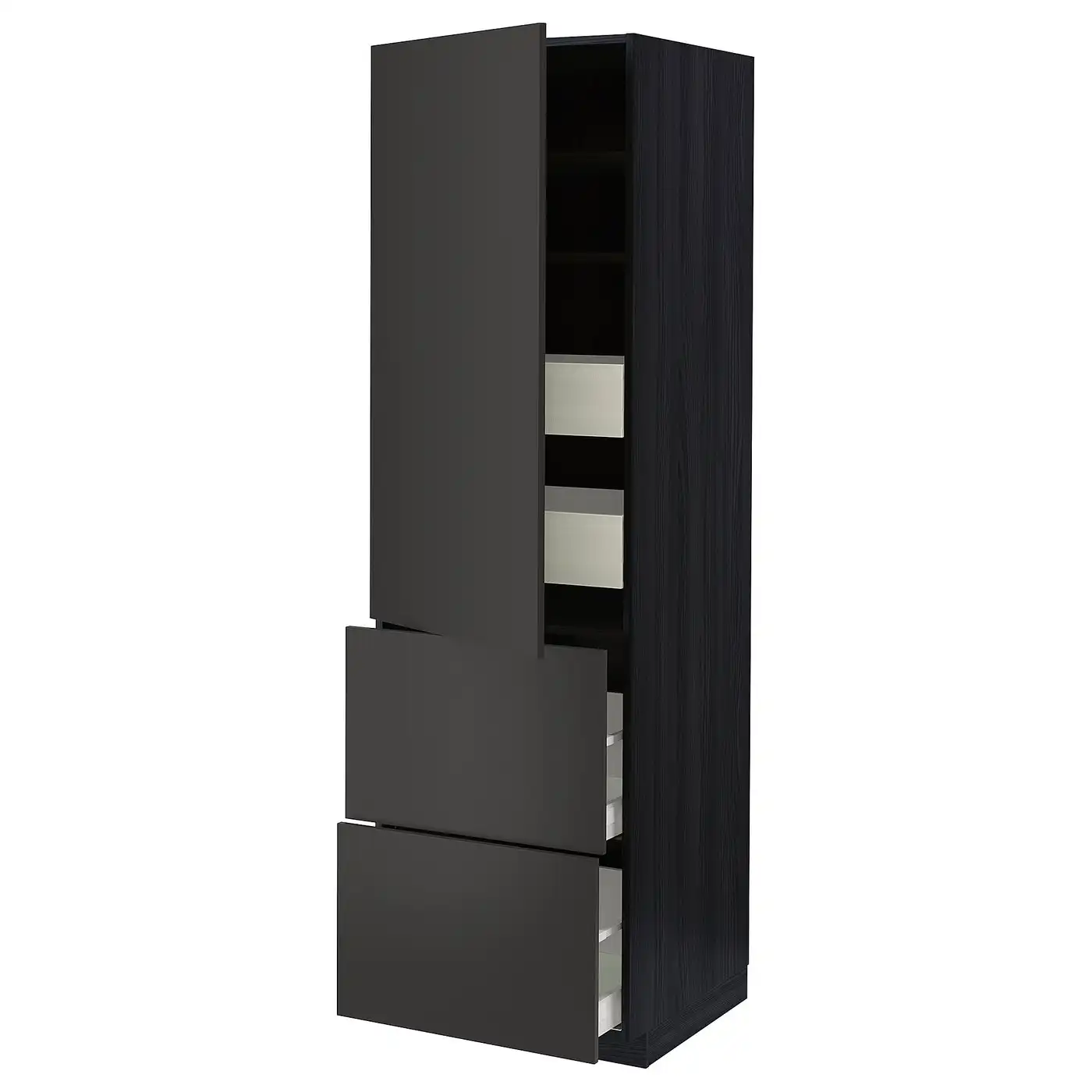METOD / MAXIMERA Hi cab w 2 doors/4 drawers - black/Nickebo matt anthracite 60x60x200 cm