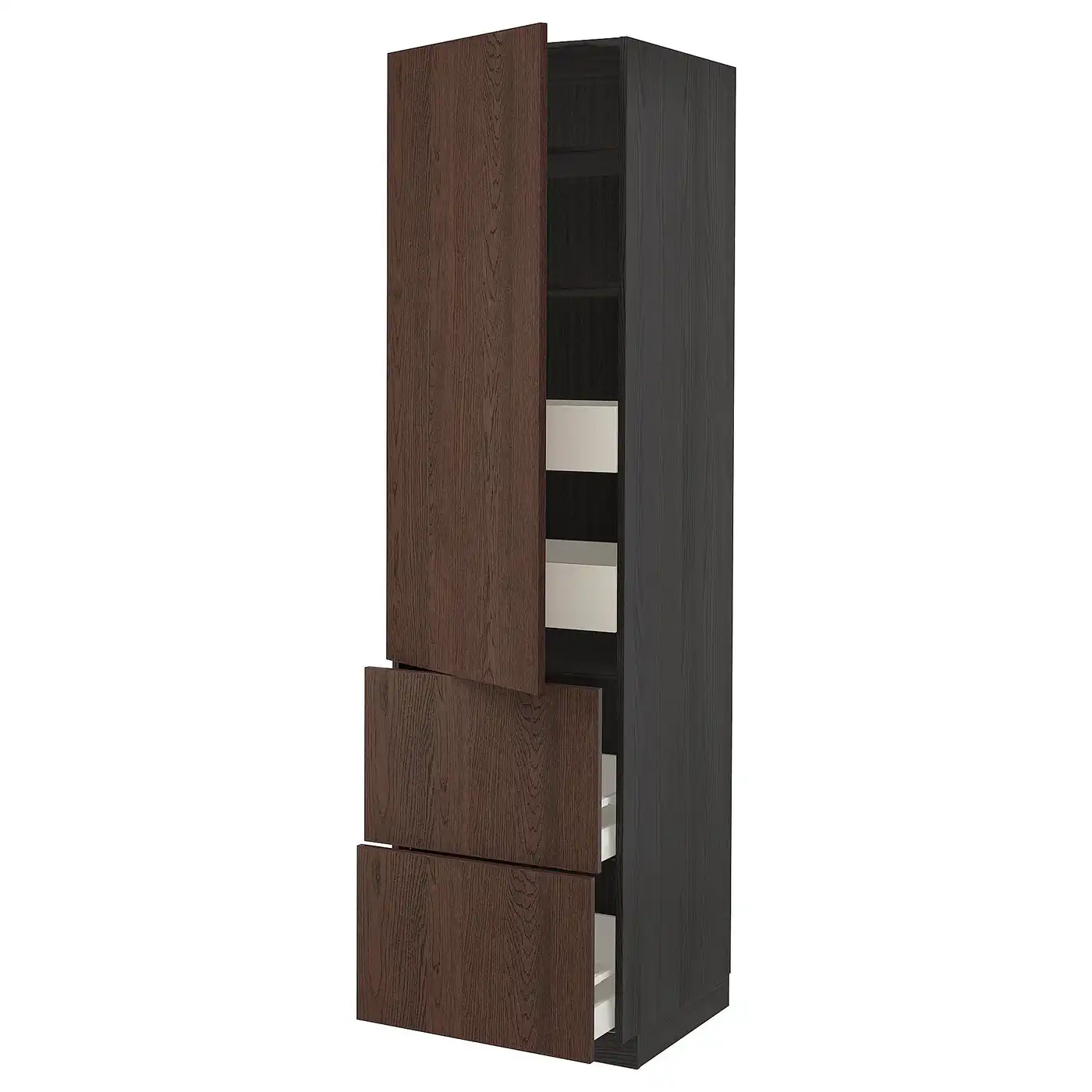 METOD / MAXIMERA Hi cab w shlvs/4 drawers/dr/2 frnts - black/Sinarp brown 60x60x220 cm