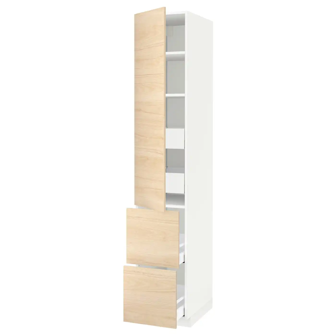 METOD / MAXIMERA Hi cab w shlvs/4 drawers/dr/2 frnts - white/Askersund light ash effect 40x60x220 cm