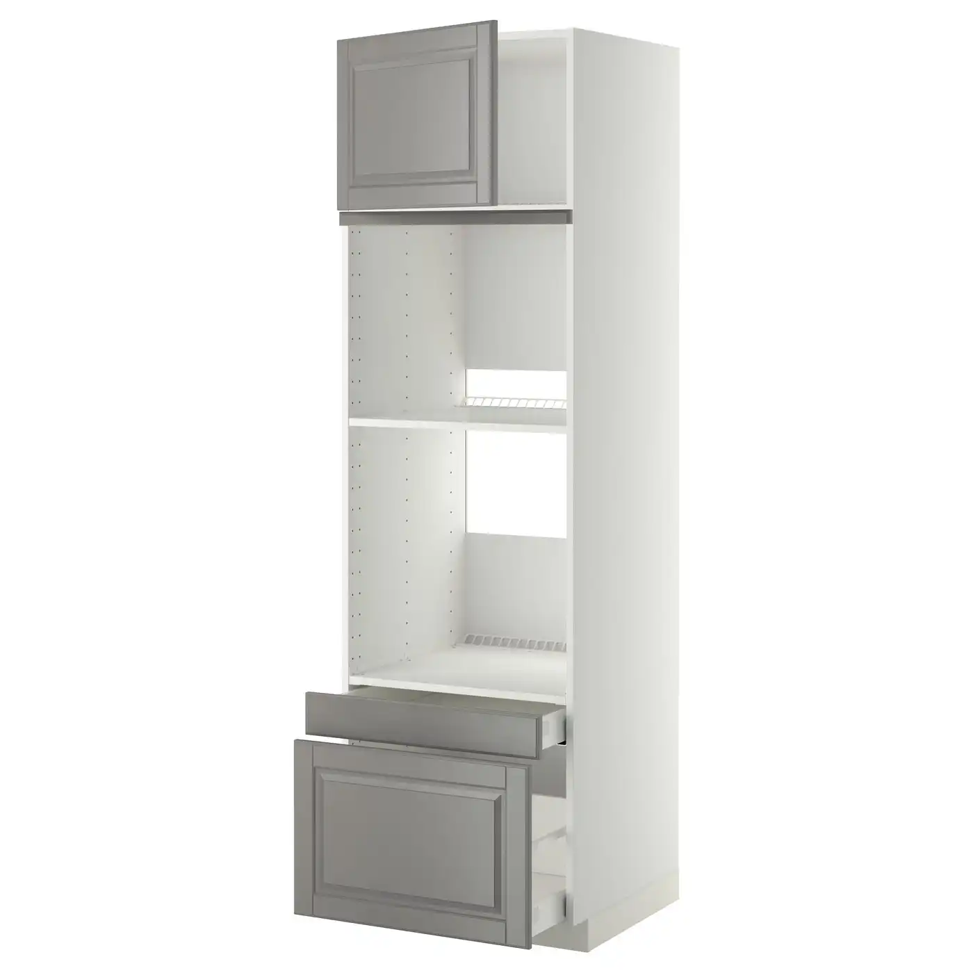 METOD / MAXIMERA High cabinet f oven+door/2 drawers - white/Bodbyn grey 60x60x200 cm