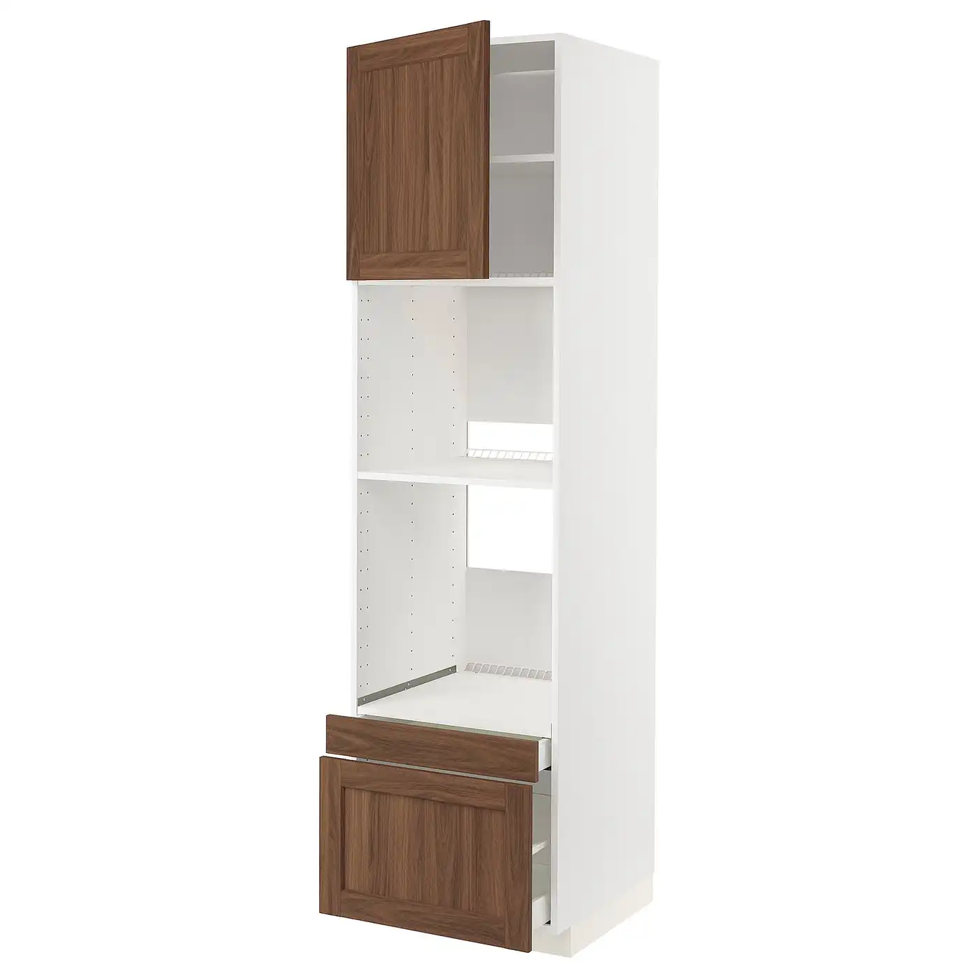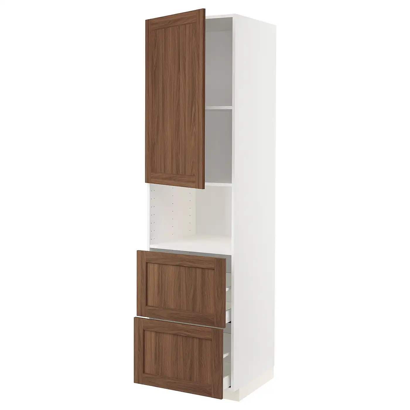 METOD / MAXIMERA Hi cab f micro w door/2 drawers - white Enköping/brown walnut effect 60x60x220 cm