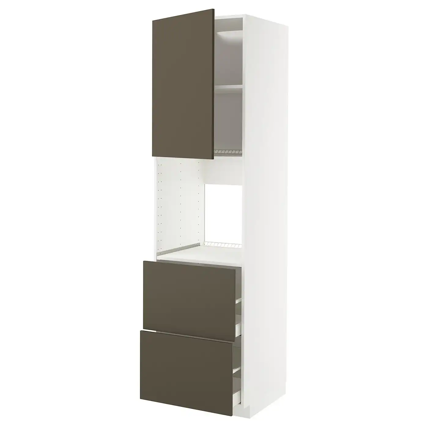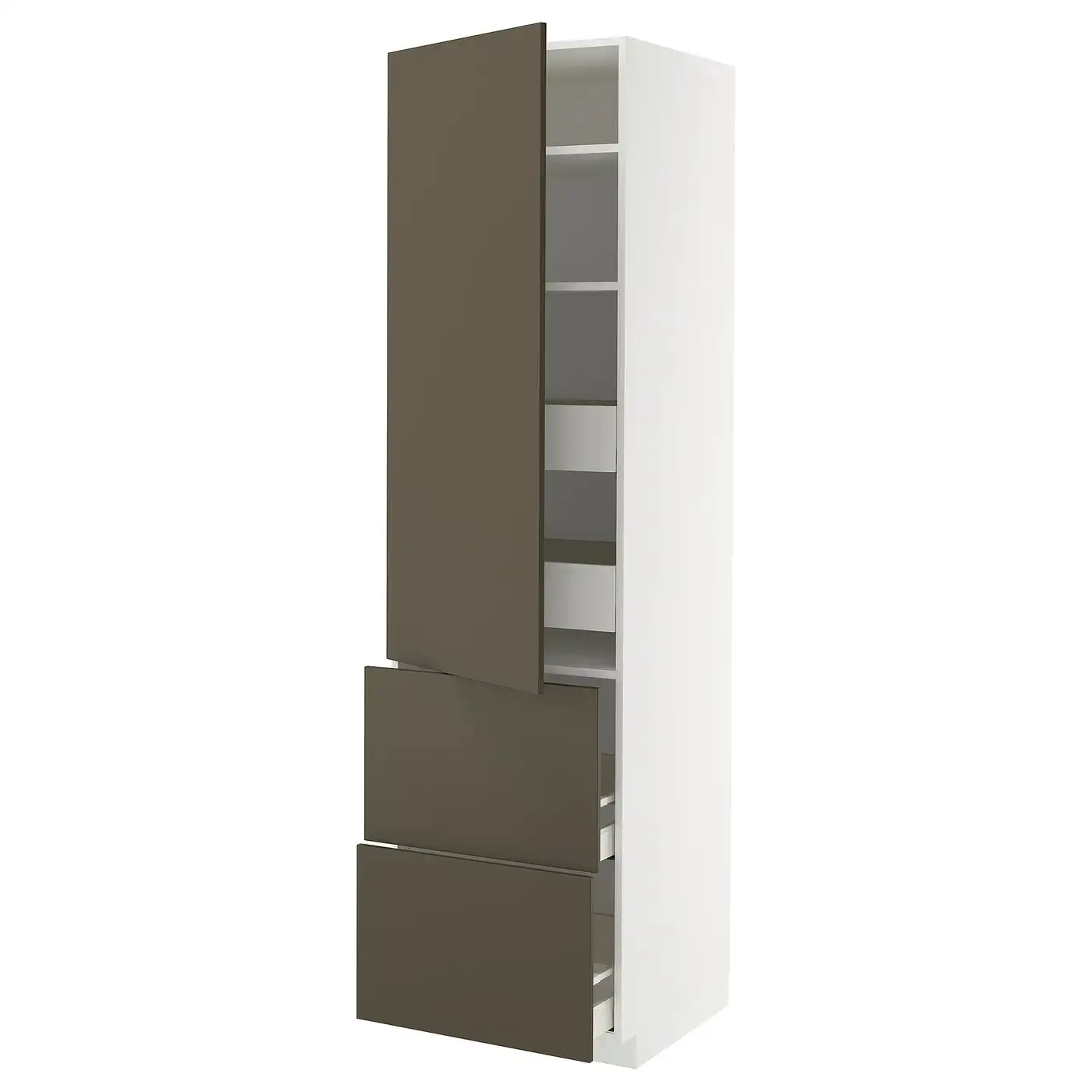 METOD / MAXIMERA Hi cab w shlvs/4 drawers/dr/2 frnts - white/Havstorp brown-beige 60x60x220 cm