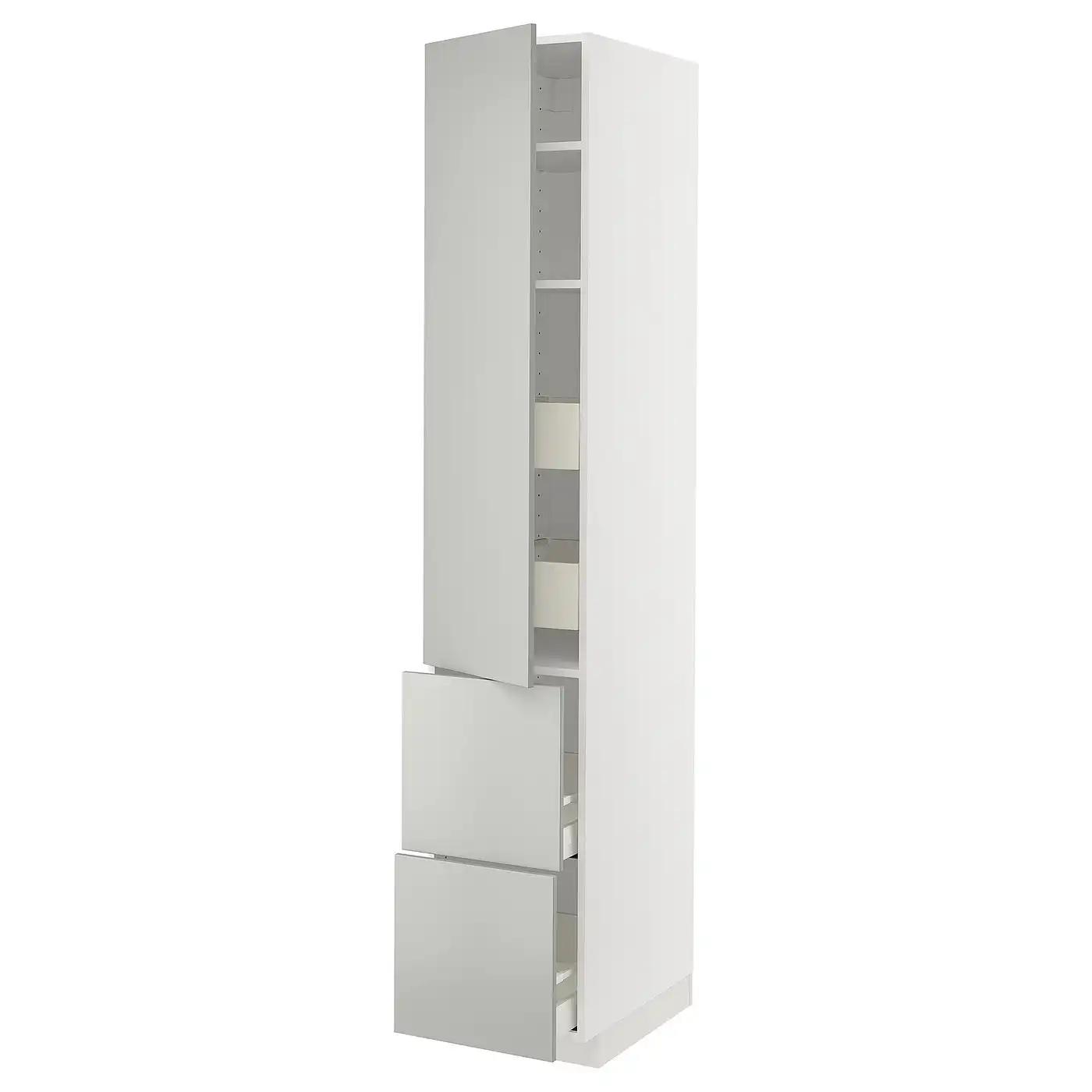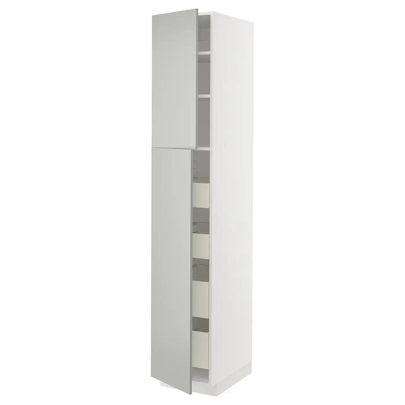 METOD / MAXIMERA Hi cab w shlvs/4 drawers/dr/2 frnts - white/Havstorp light grey 40x60x220 cm