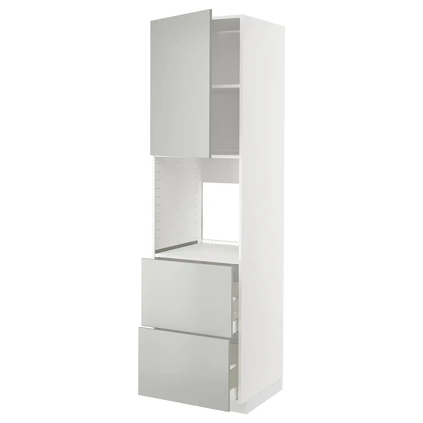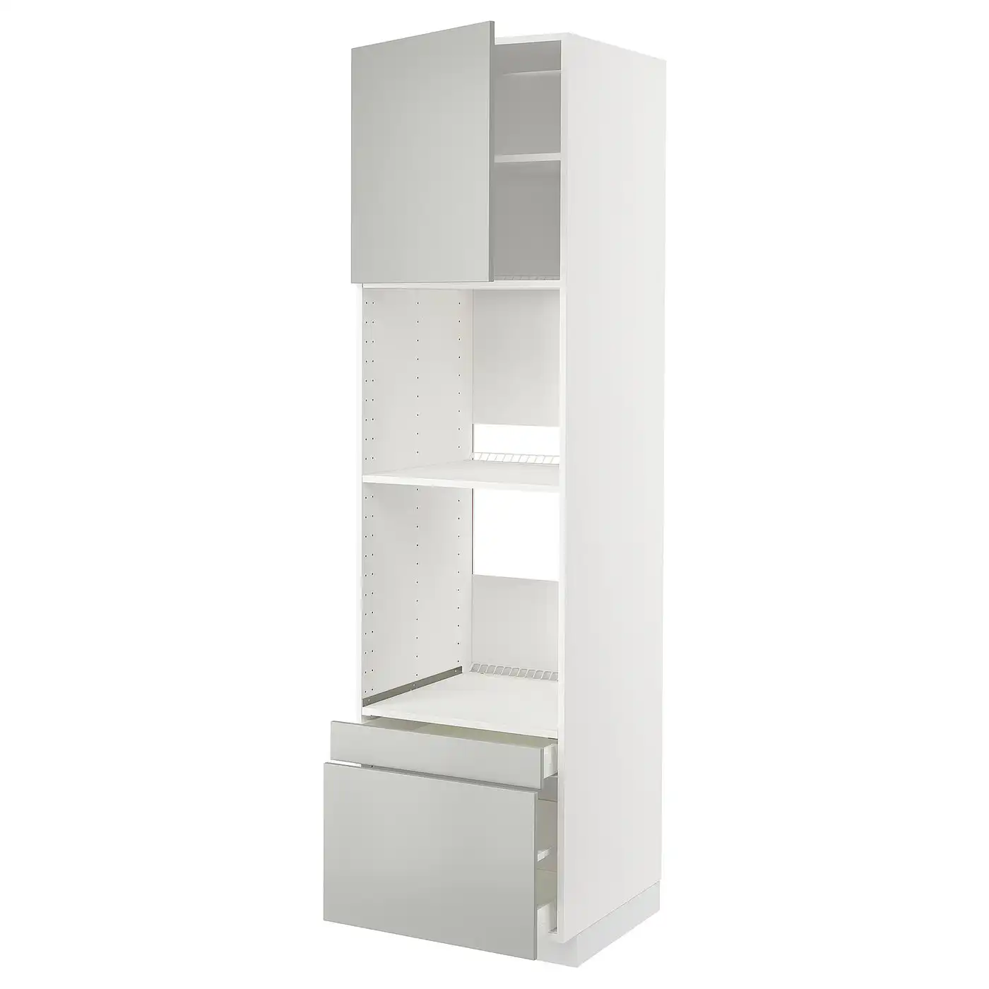 METOD / MAXIMERA Hi cab f micro w door/2 drawers - white/Havstorp light grey 60x60x220 cm