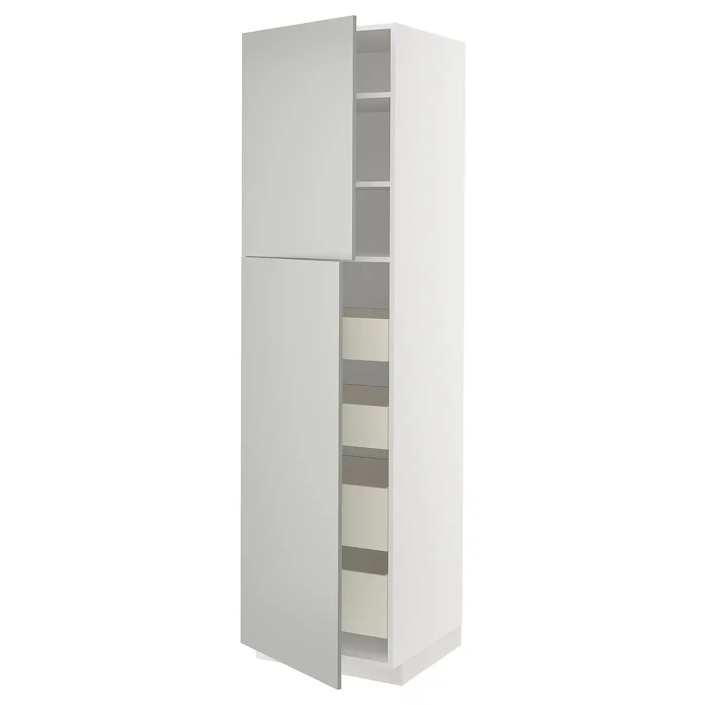 METOD / MAXIMERA Hi cab w 2 doors/4 drawers - white/Havstorp light grey 60x60x220 cm