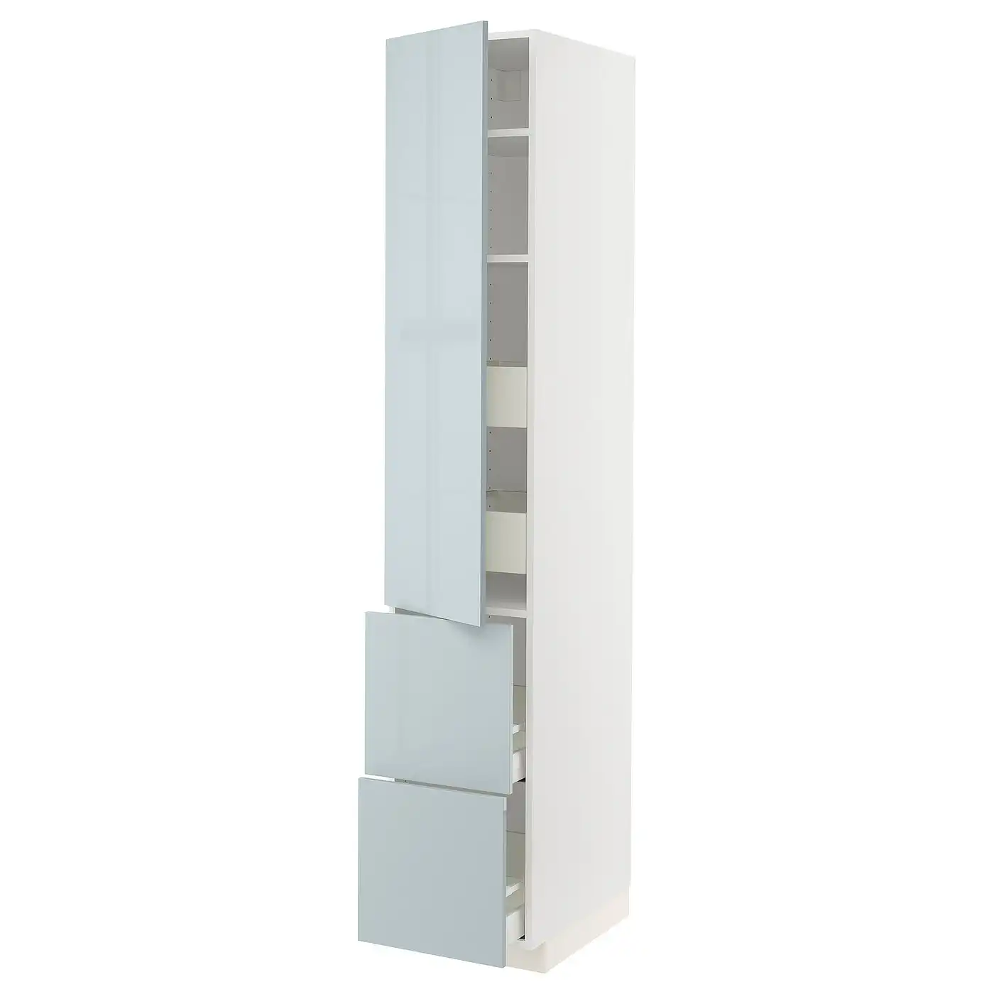 METOD / MAXIMERA Hi cab w shlvs/4 drawers/dr/2 frnts - white/Kallarp light grey-blue 40x60x220 cm