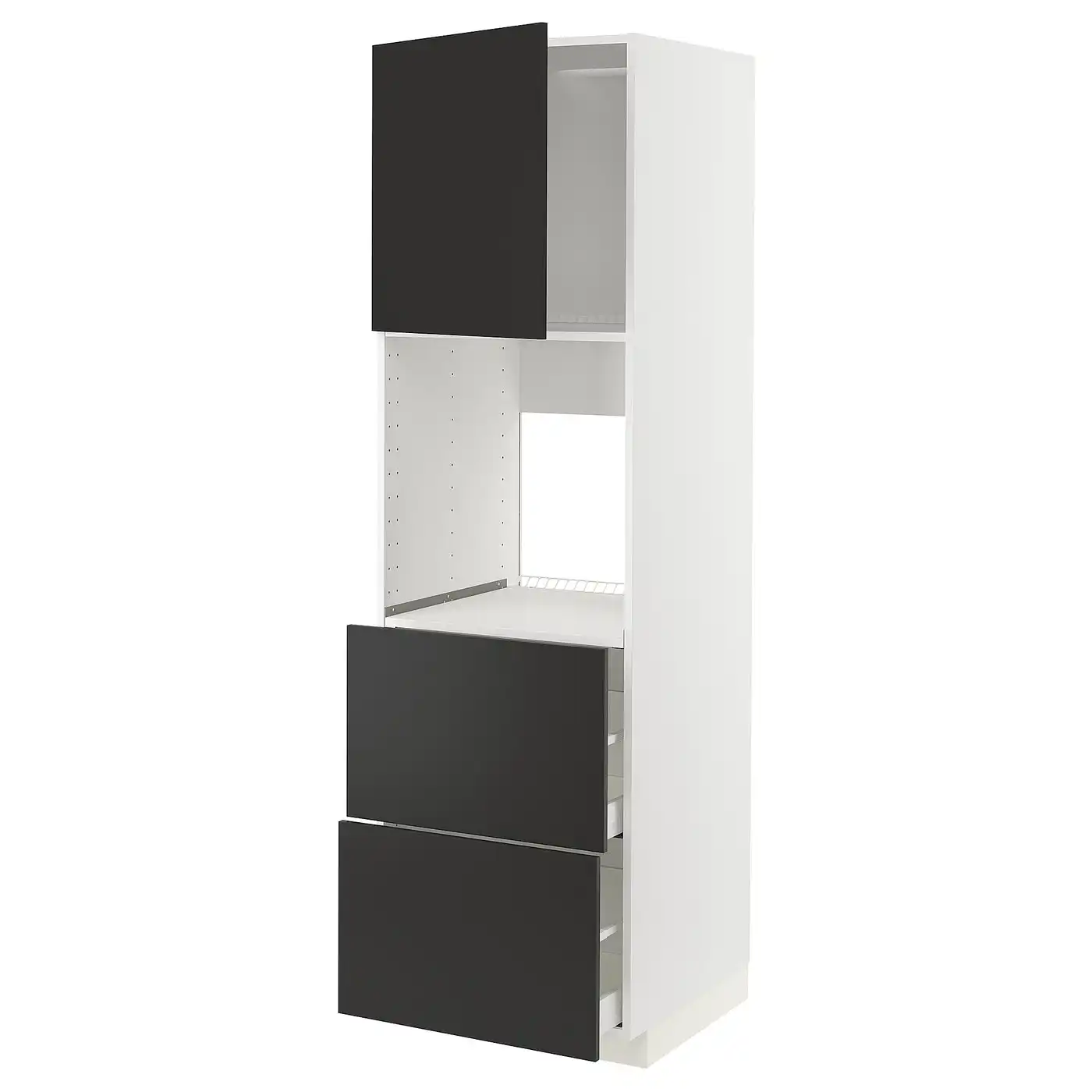 METOD / MAXIMERA High cabinet f oven+door/2 drawers - white/Nickebo matt anthracite 60x60x200 cm