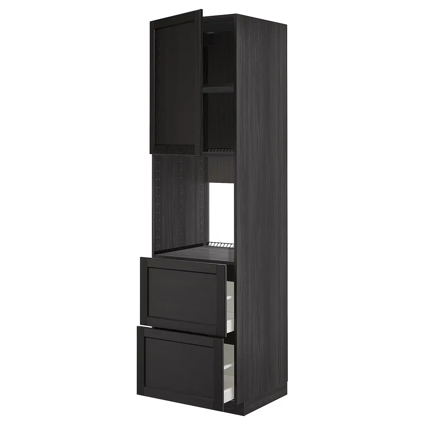METOD / MAXIMERA High cab f oven/micro w dr/2 drwrs - black/Lerhyttan black stained 60x60x220 cm
