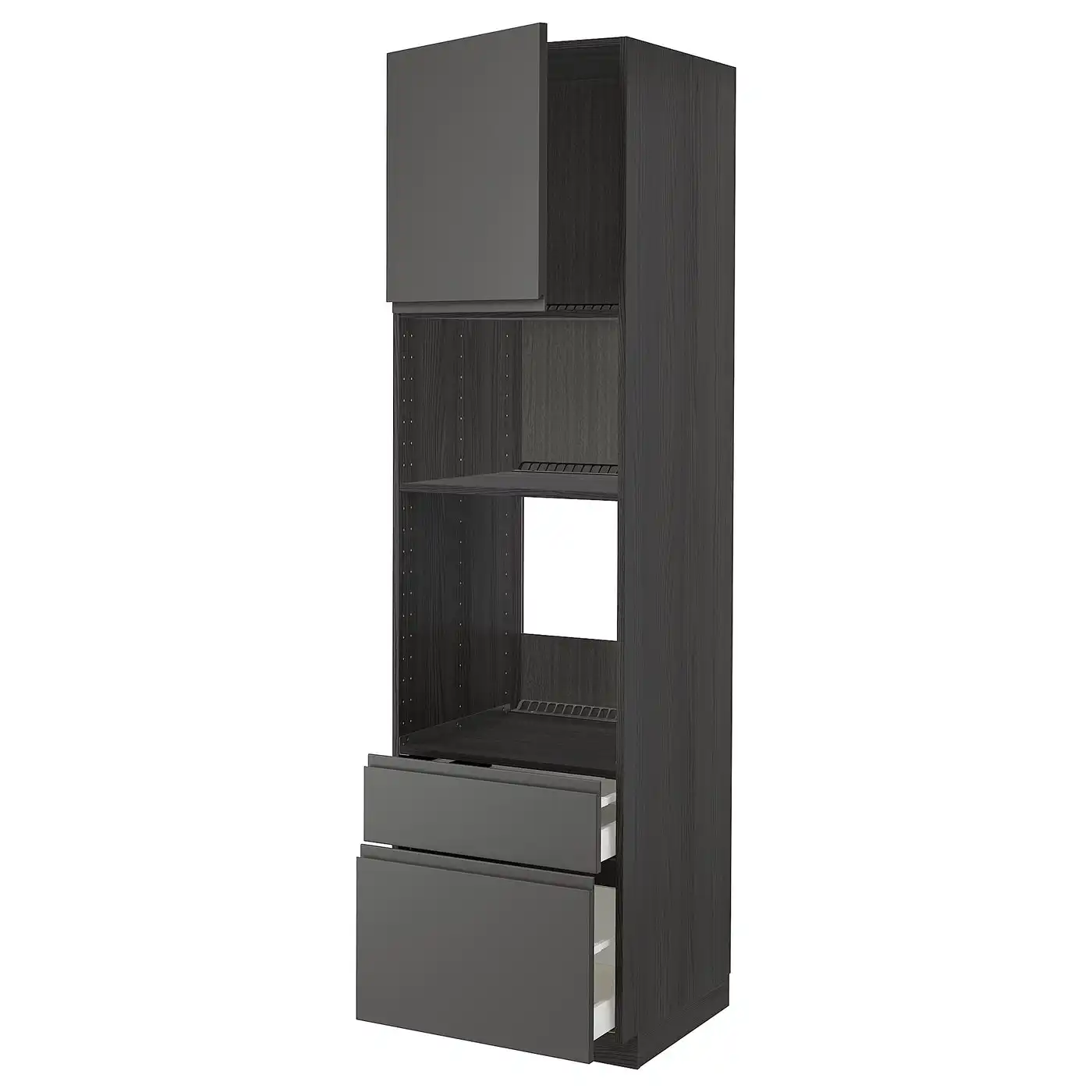 METOD / MAXIMERA High cab f oven/micro w dr/2 drwrs - black/Voxtorp dark grey 60x60x220 cm