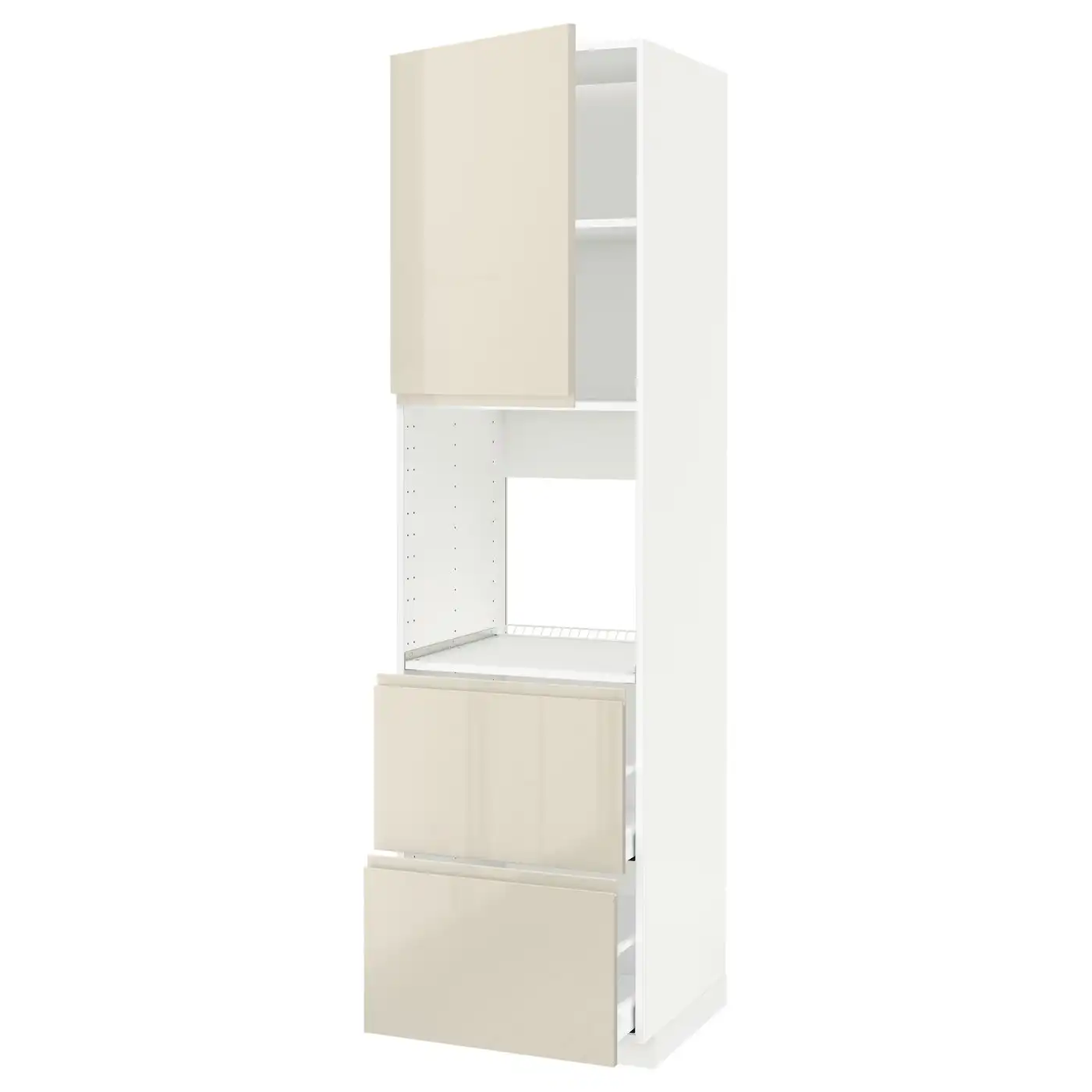 METOD / MAXIMERA Hi cab f ov w dr/2 frnts/2 hi drwrs - white/Voxtorp high-gloss light beige 60x60x220 cm