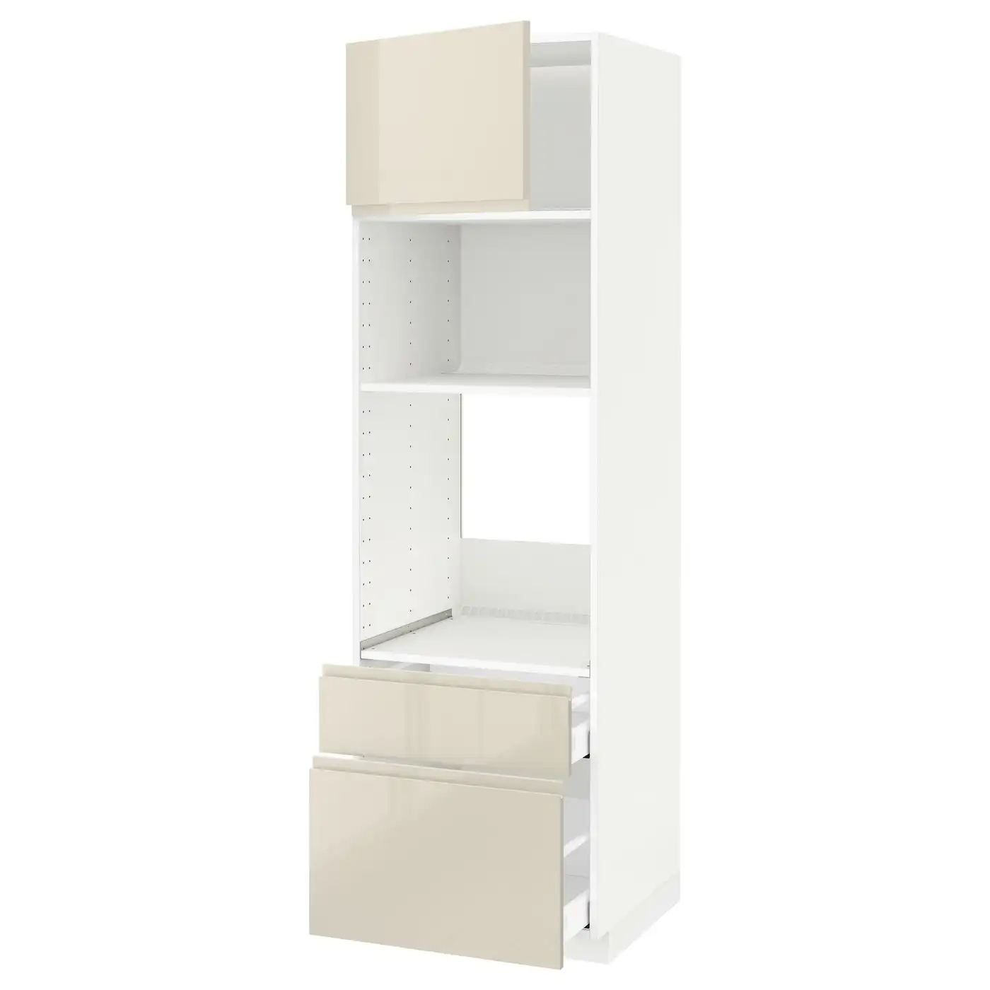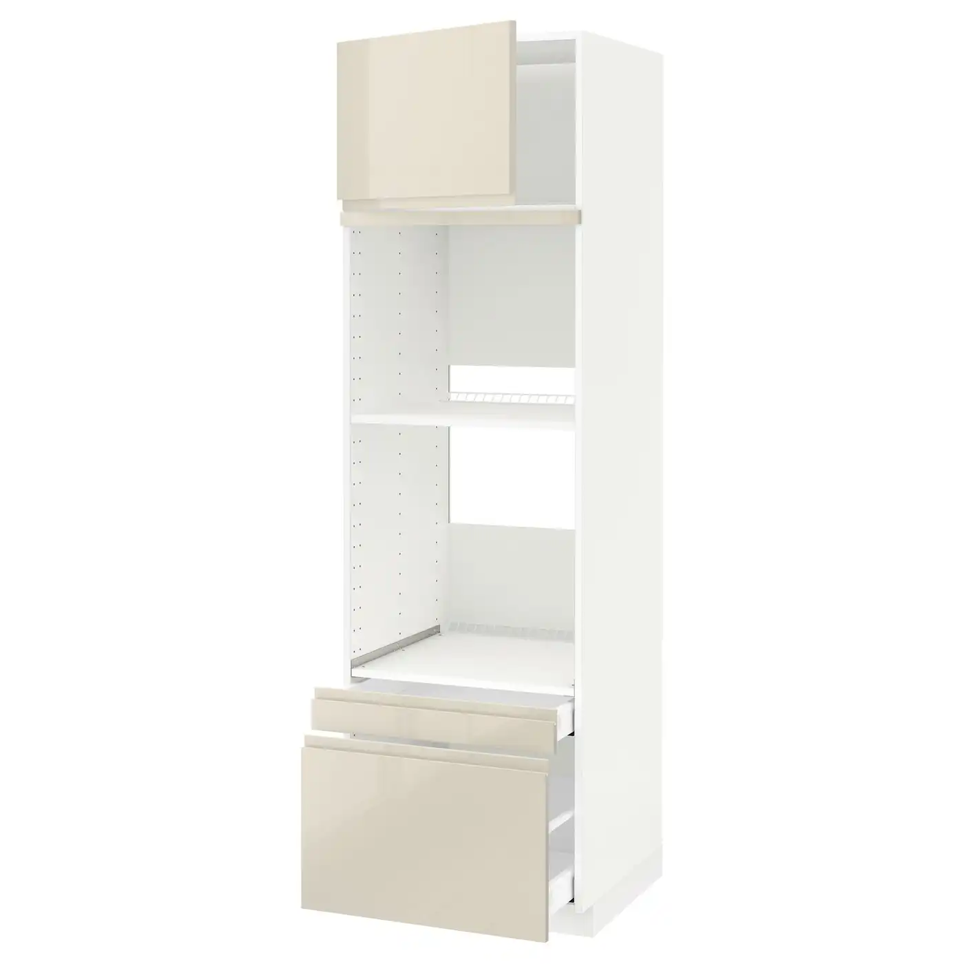 METOD / MAXIMERA Hi cab f ov/combi ov w dr/2 drwrs - white/Voxtorp high-gloss light beige 60x60x200 cm