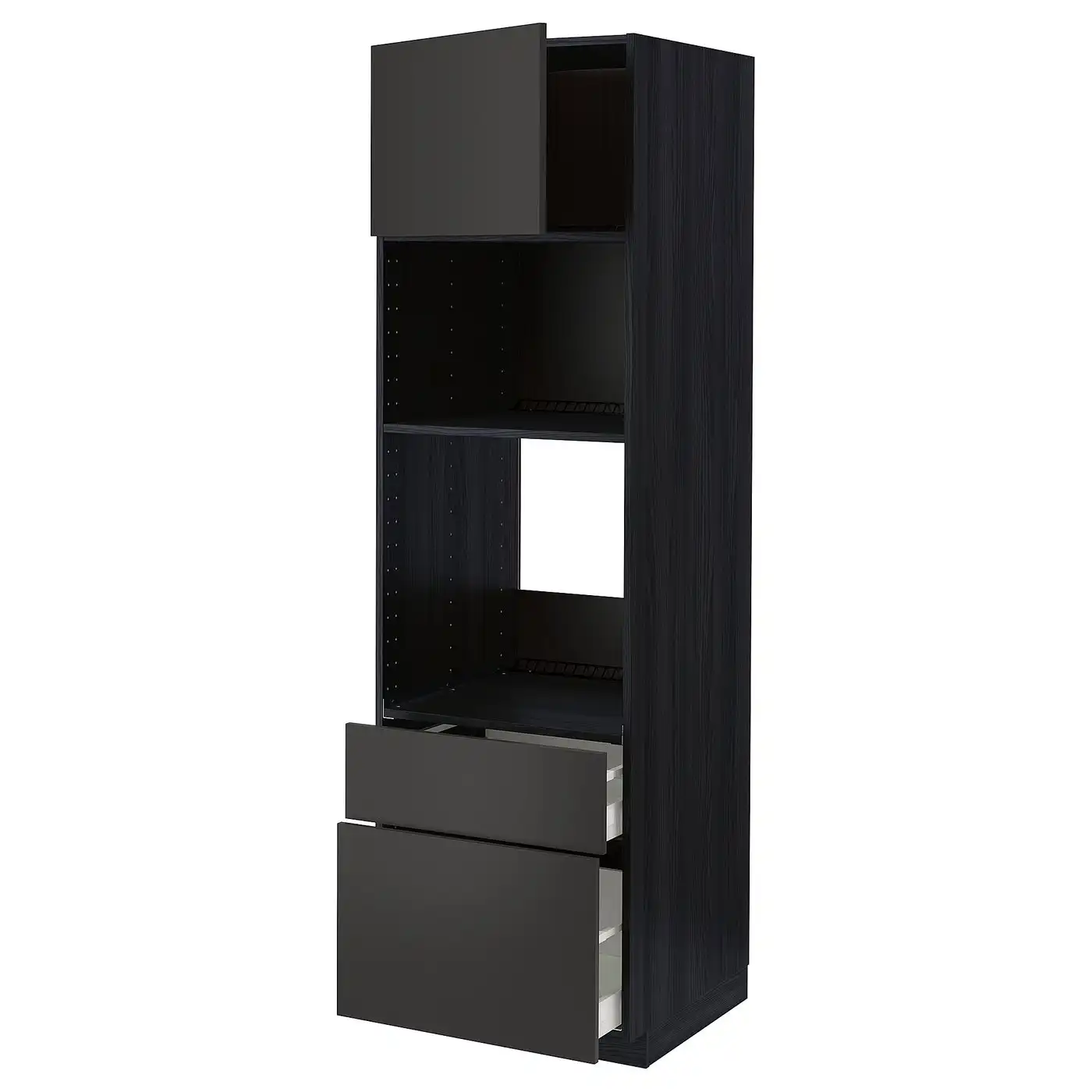METOD / MAXIMERA High cab f oven/micro w dr/2 drwrs - black/Nickebo matt anthracite 60x60x200 cm