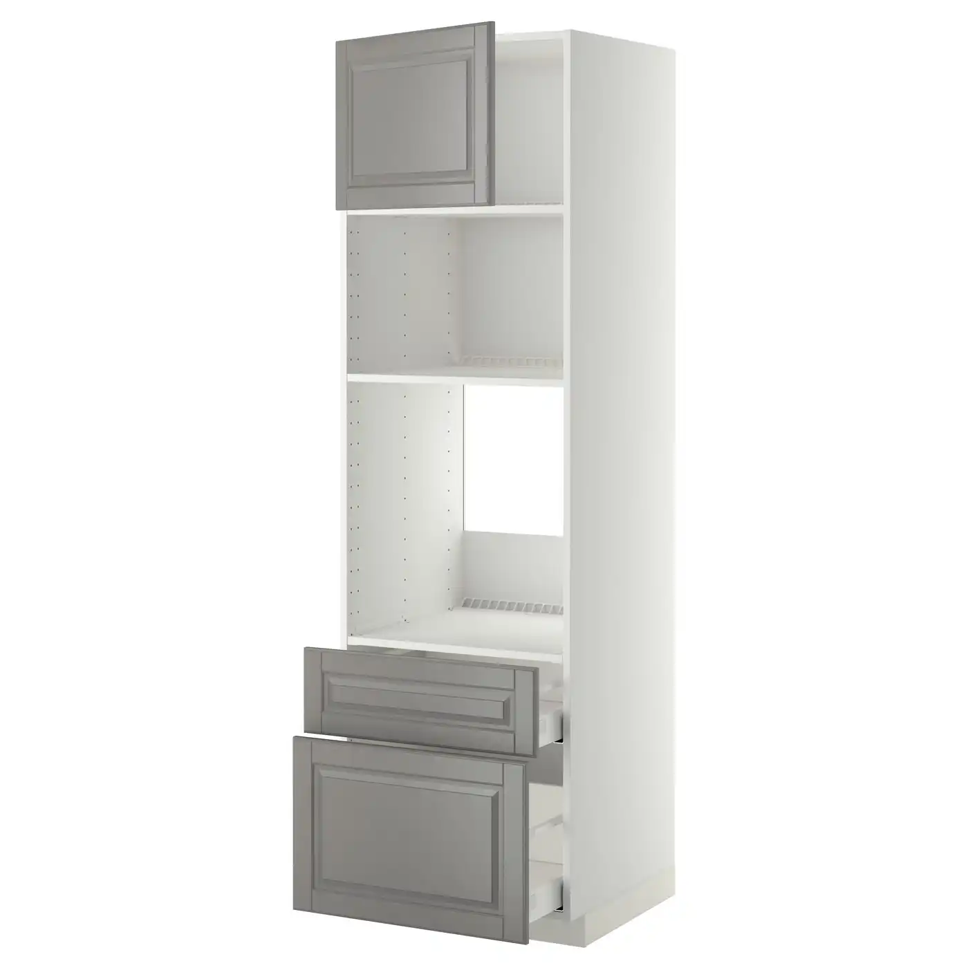 METOD / MAXIMERA High cab f oven/micro w dr/2 drwrs - white/Bodbyn grey 60x60x200 cm