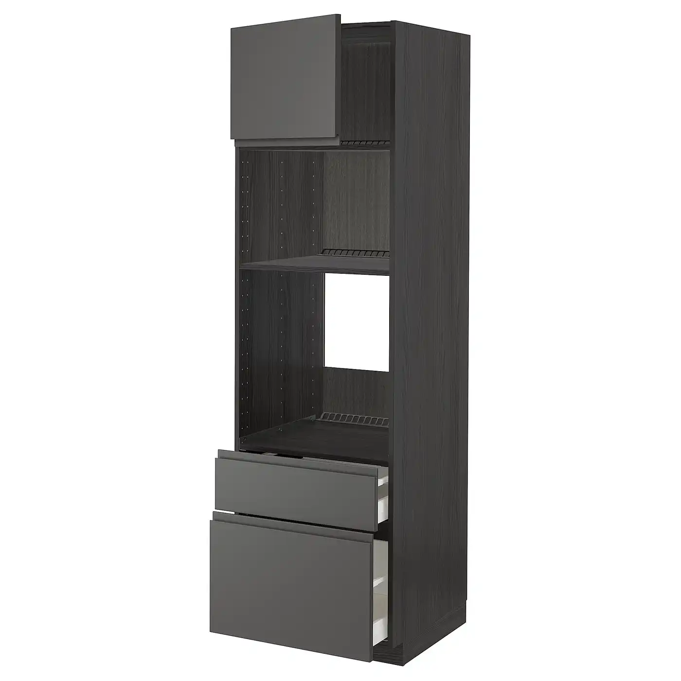 METOD / MAXIMERA High cab f oven/micro w dr/2 drwrs - black/Voxtorp dark grey 60x60x200 cm