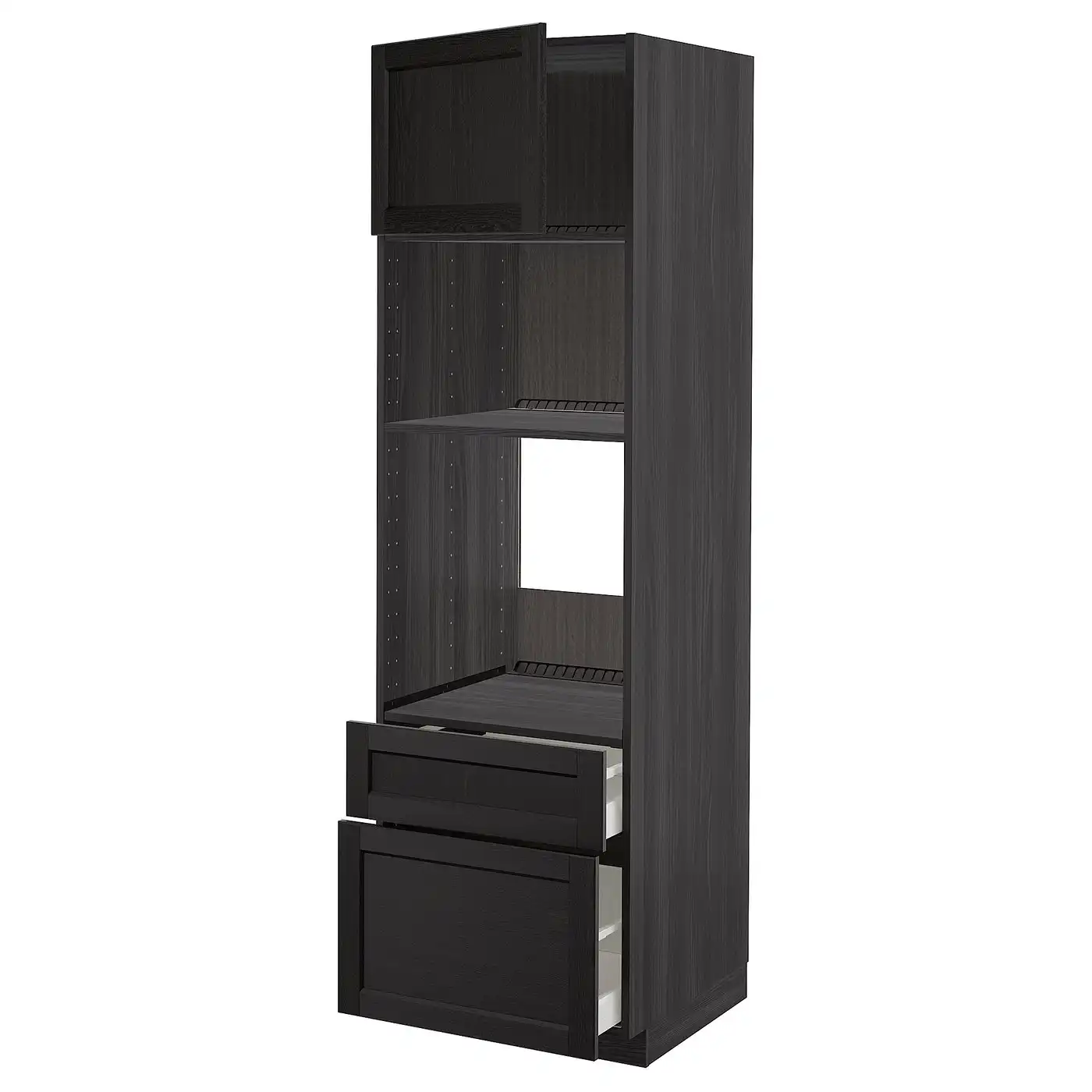 METOD / MAXIMERA High cab f oven/micro w dr/2 drwrs - black/Sinarp brown 60x60x200 cm