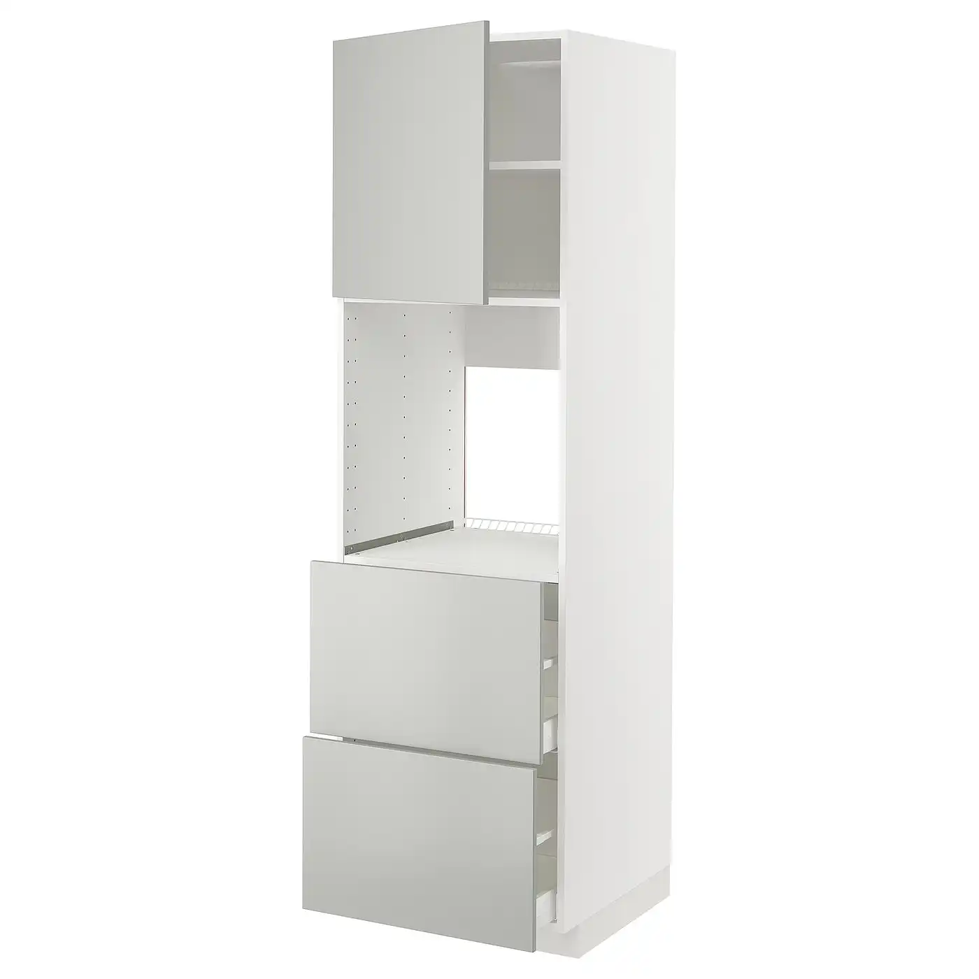 METOD / MAXIMERA High cabinet f oven+door/2 drawers - white/Havstorp light grey 60x60x200 cm