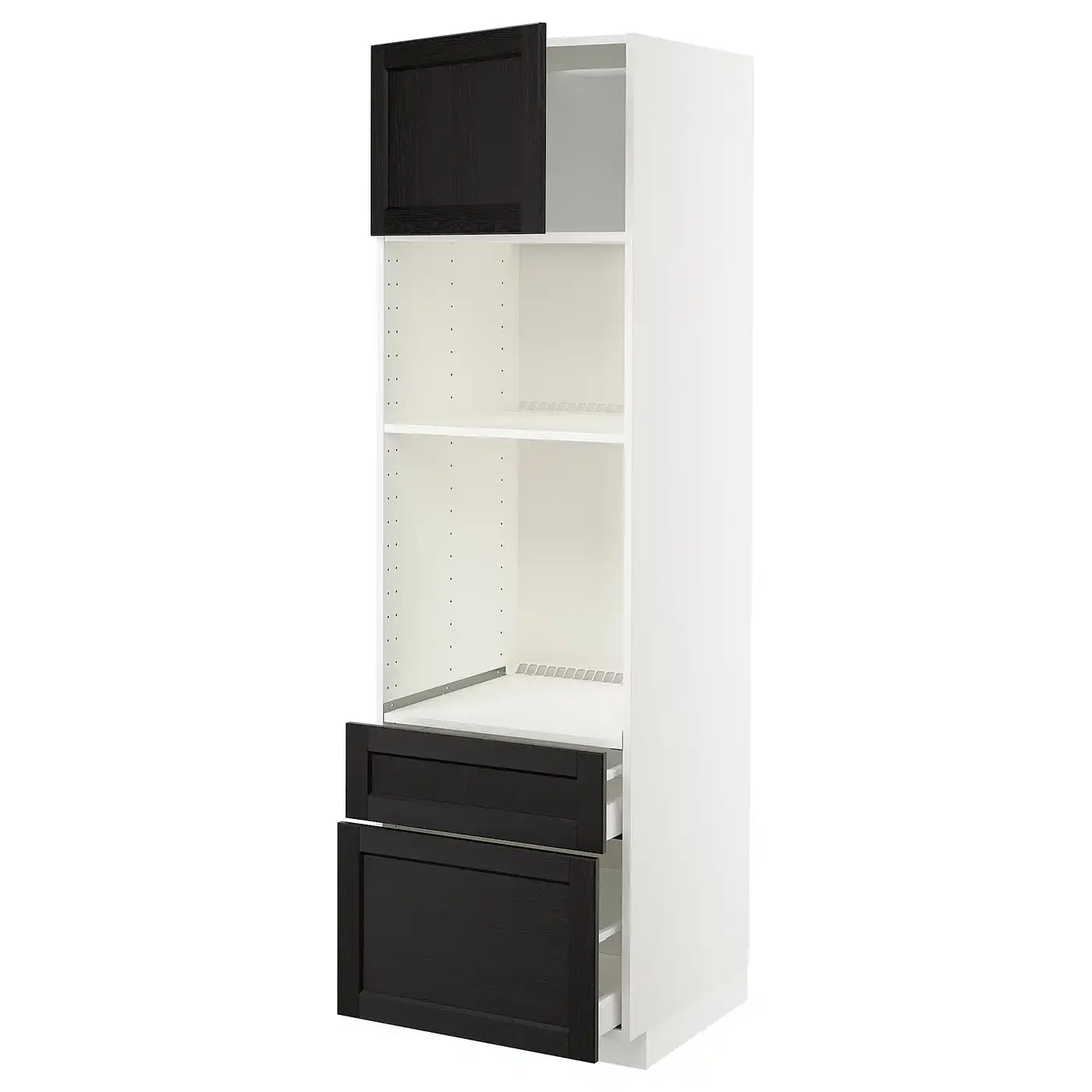 METOD / MAXIMERA High cabinet f built-in appliances - white/Lerhyttan black stained 60x60x200 cm