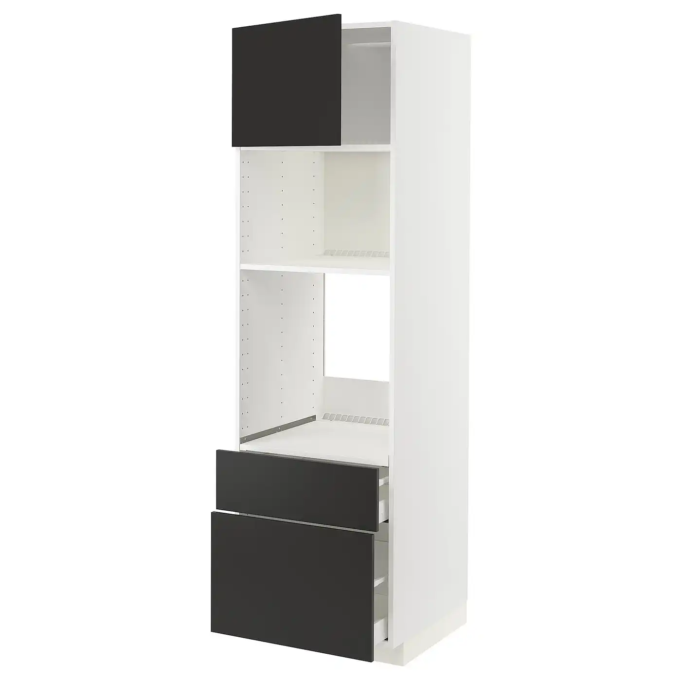 METOD / MAXIMERA High cabinet f built-in appliances - white/Nickebo matt anthracite 60x60x200 cm