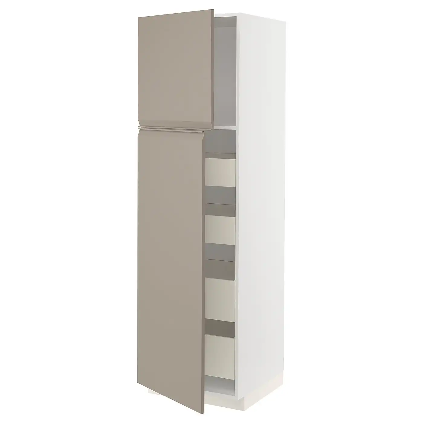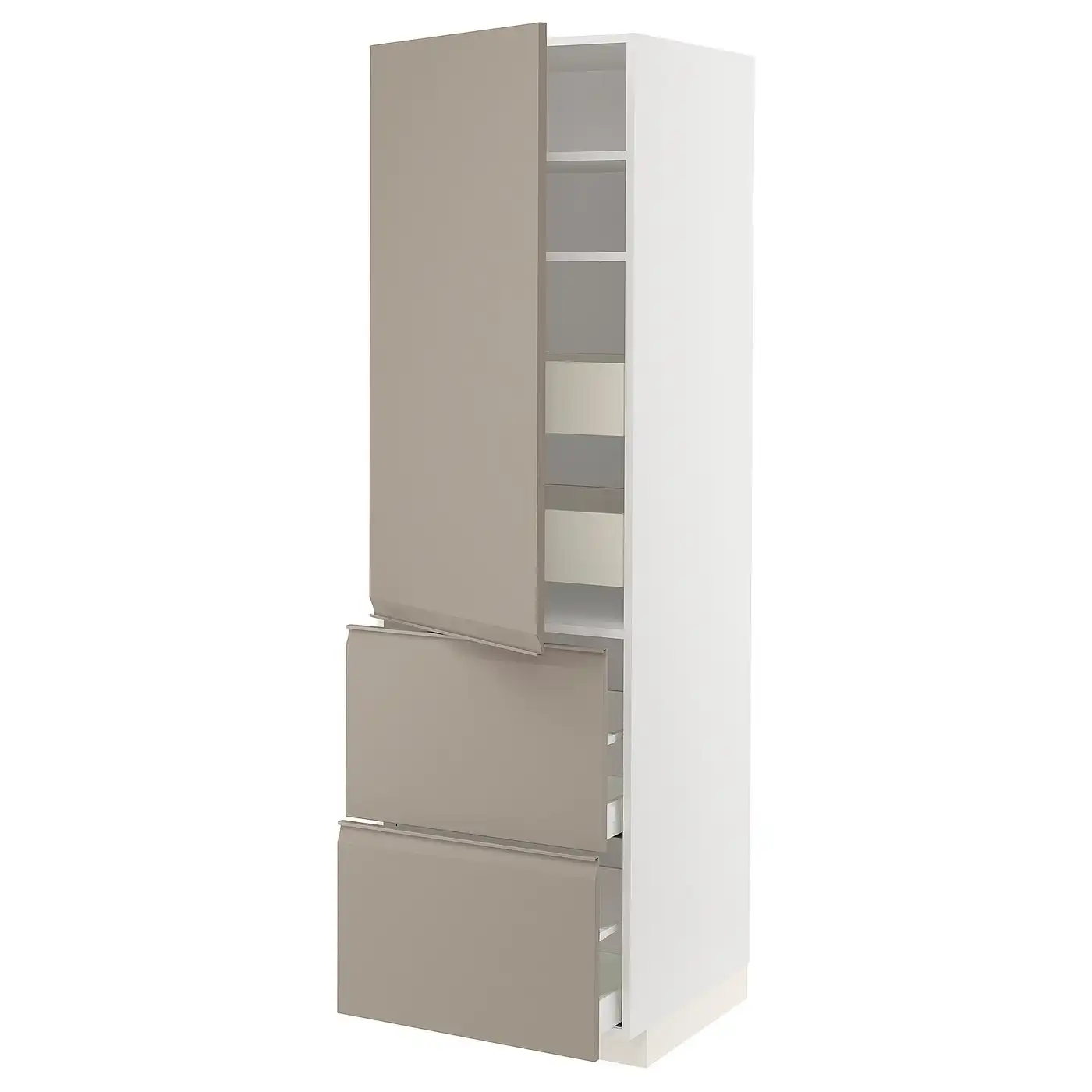 METOD / MAXIMERA Hi cab w 2 doors/4 drawers - white/Upplöv matt dark beige 60x60x200 cm