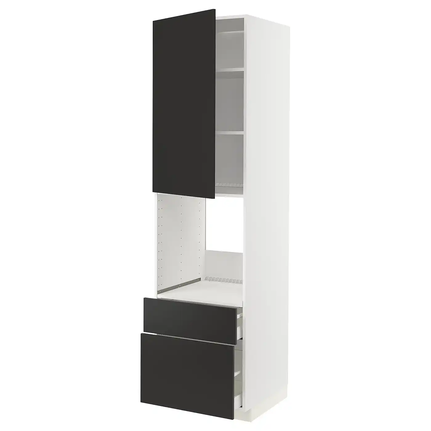 METOD / MAXIMERA High cabinet f oven+door/2 drawers - white/Nickebo matt anthracite 60x60x220 cm