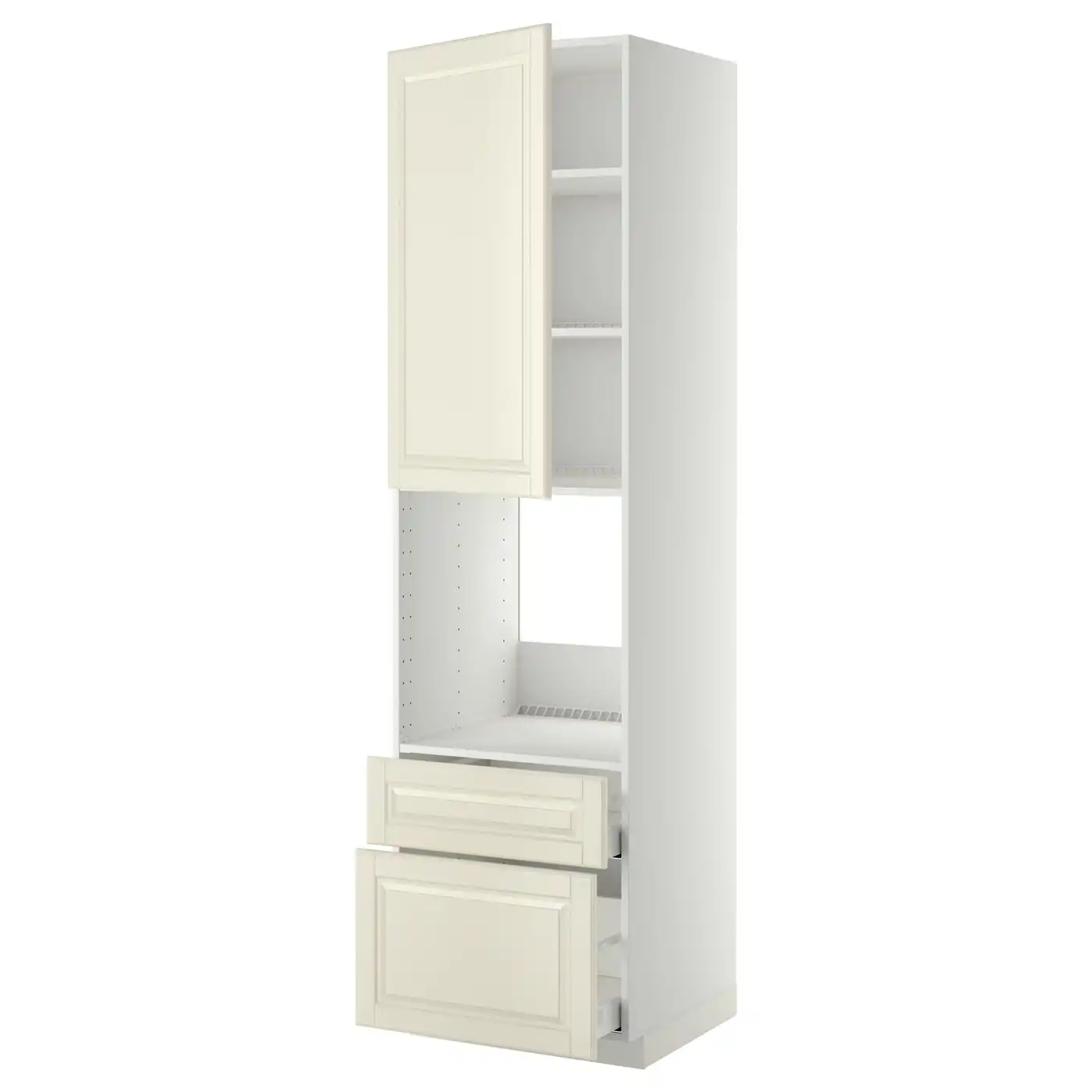 METOD / MAXIMERA High cabinet f oven+door/2 drawers - white/Bodbyn off-white 60x60x220 cm
